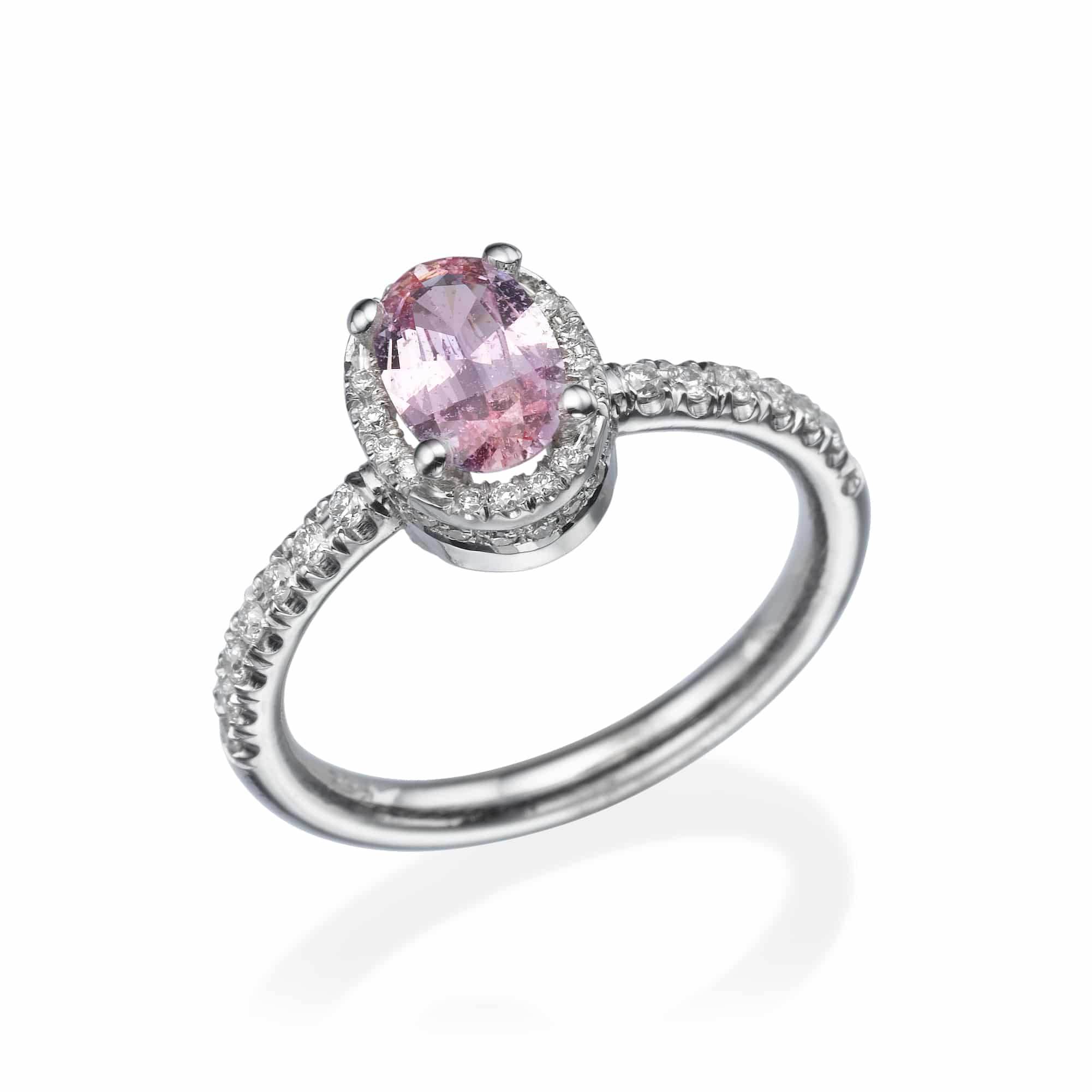 0.92Ct. Pink Sapphire with 0.33Ct. Diamonds mounted in a 14K Gold Ring.