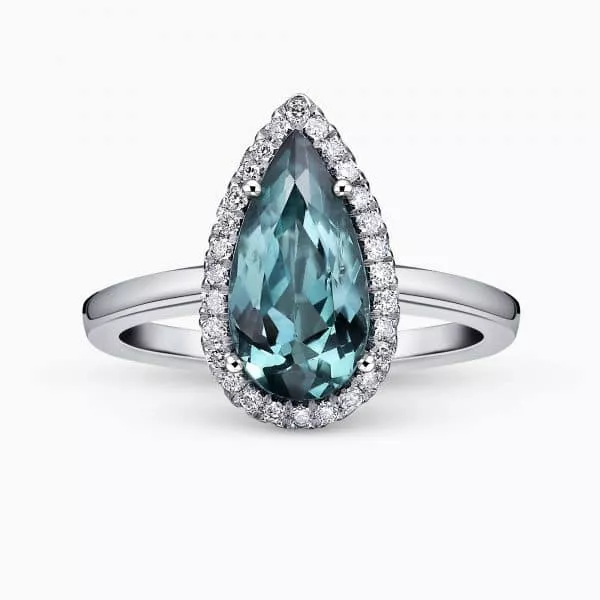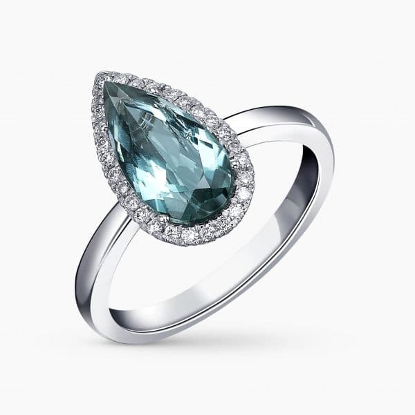 1.60Ct. Pear Shaped Tourmaline stone with 0.17Ct. Diamond setting mounted in a 14K White gold Ring.