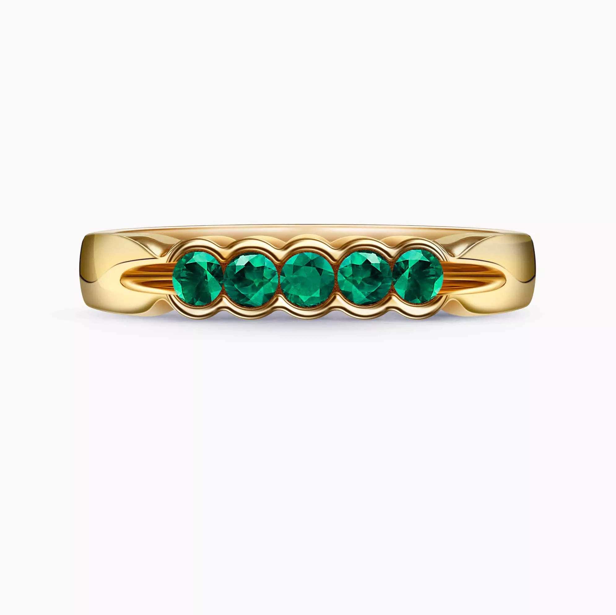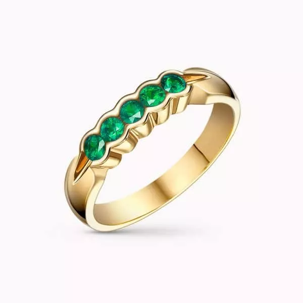 Delicate 14K Yellow Gold Ring with 0.40Ct. Emerald Gemstones.