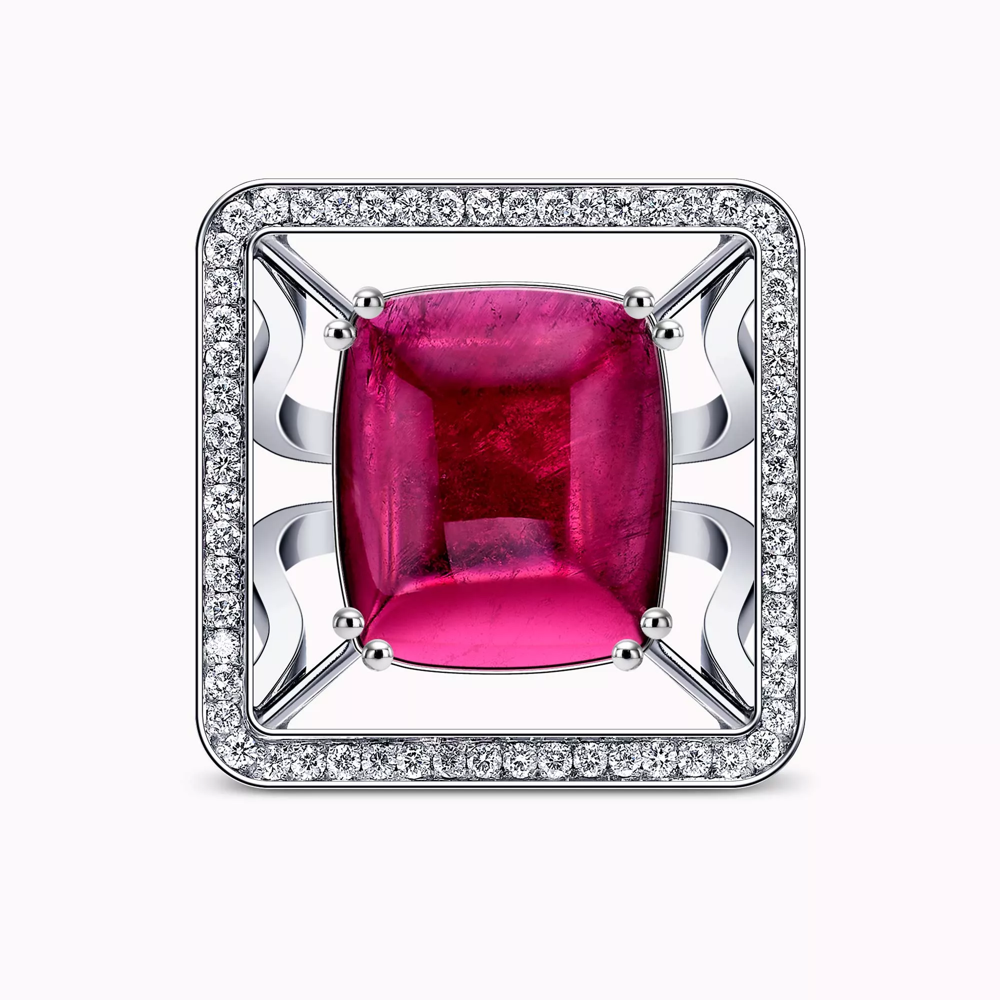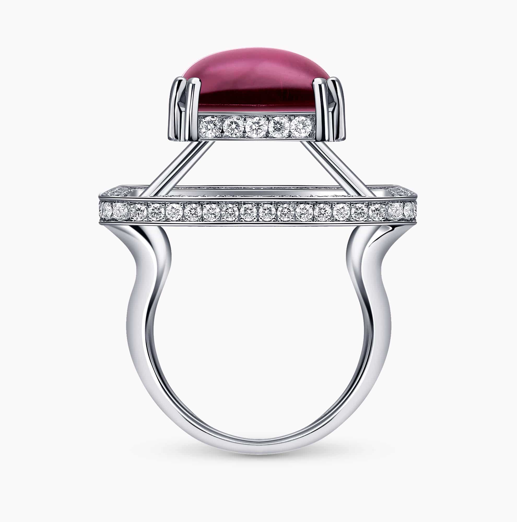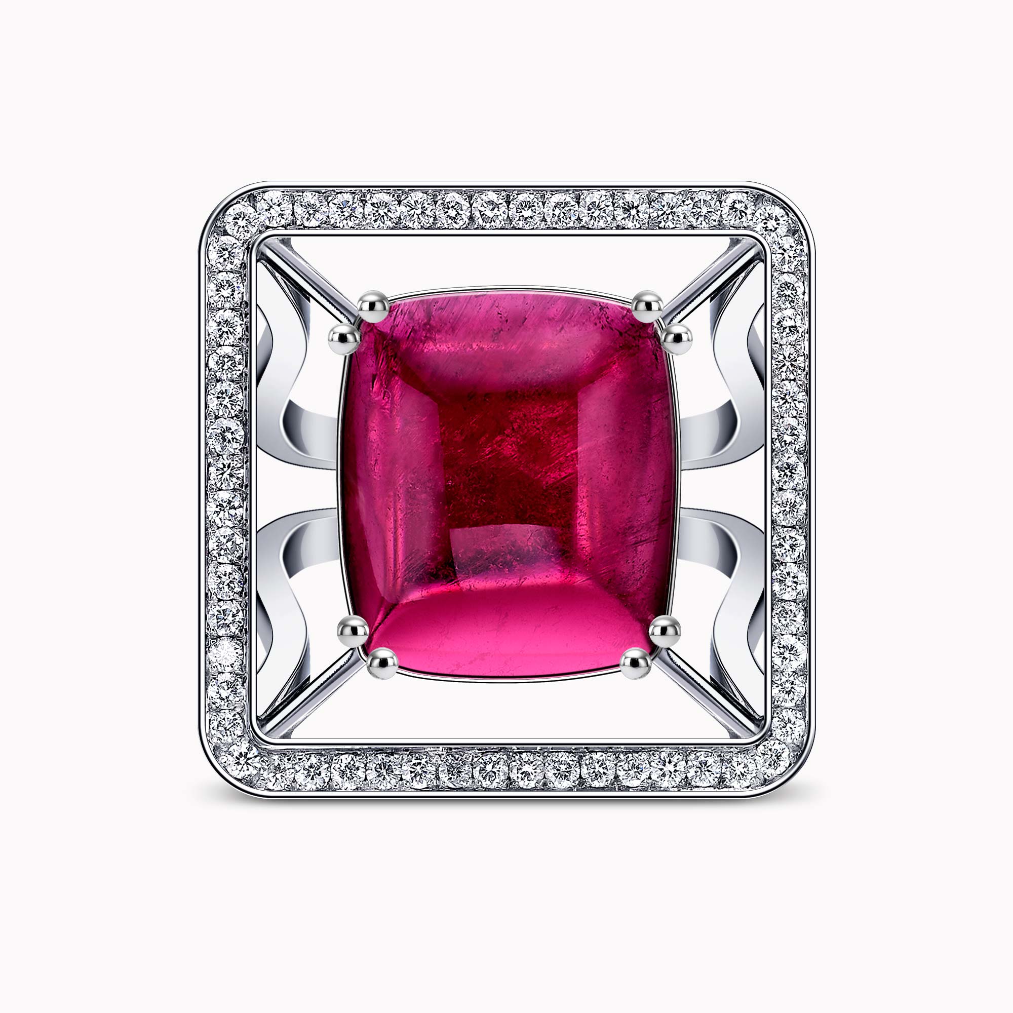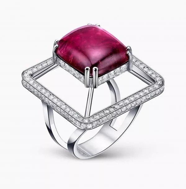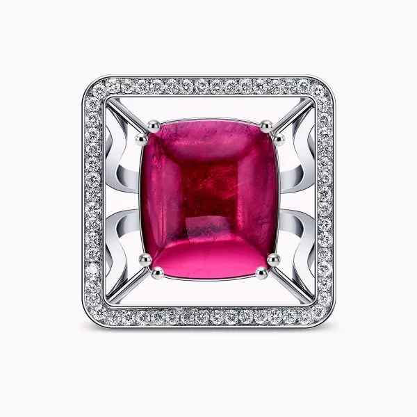 10.37Ct. Tourmaline stone with 1.46Ct. Diamond setting mounted in a 18K White gold Ring.