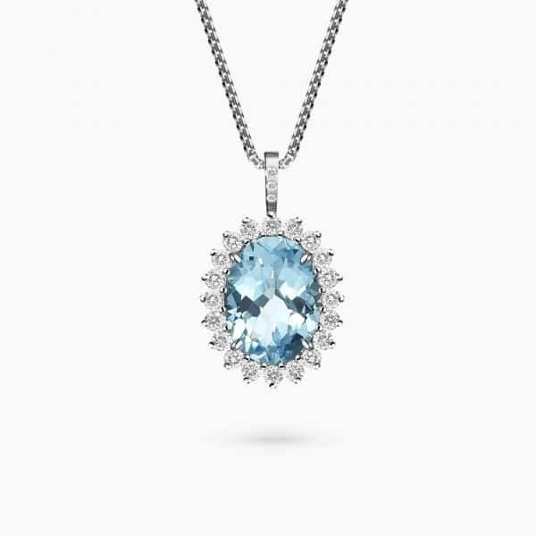 6.50Ct. Blue topaz and 0.74Ct. Diamond mounted in 14K White Gold Pendant