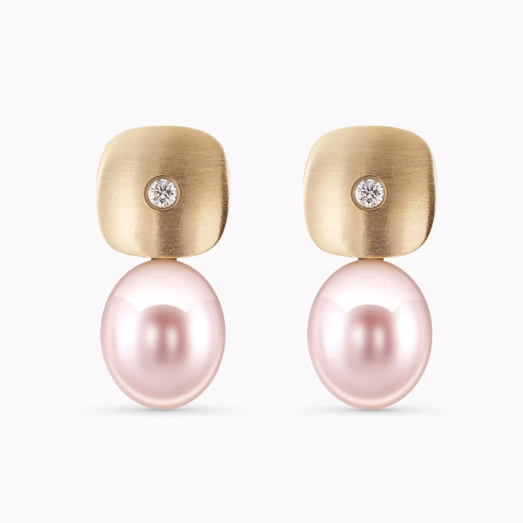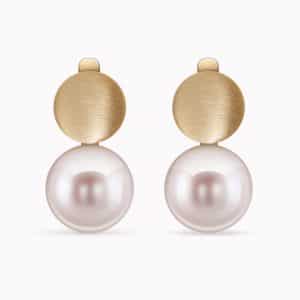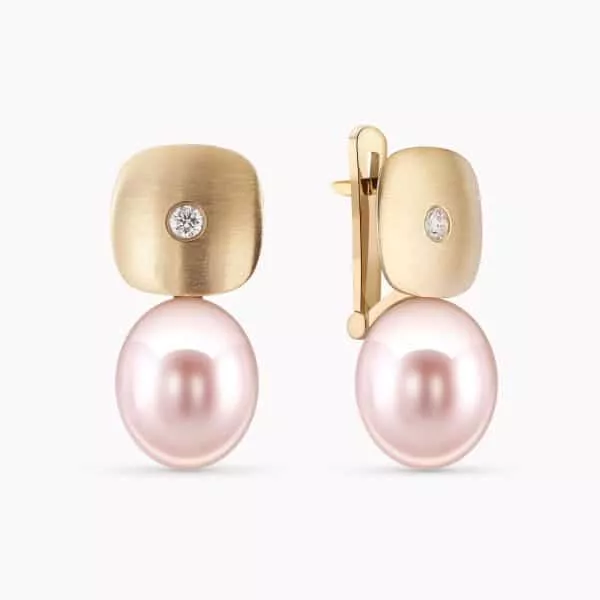 0.08Ct. Diamond with 2 Gorgeous Pearls mounted in 14K Yellow Gold.