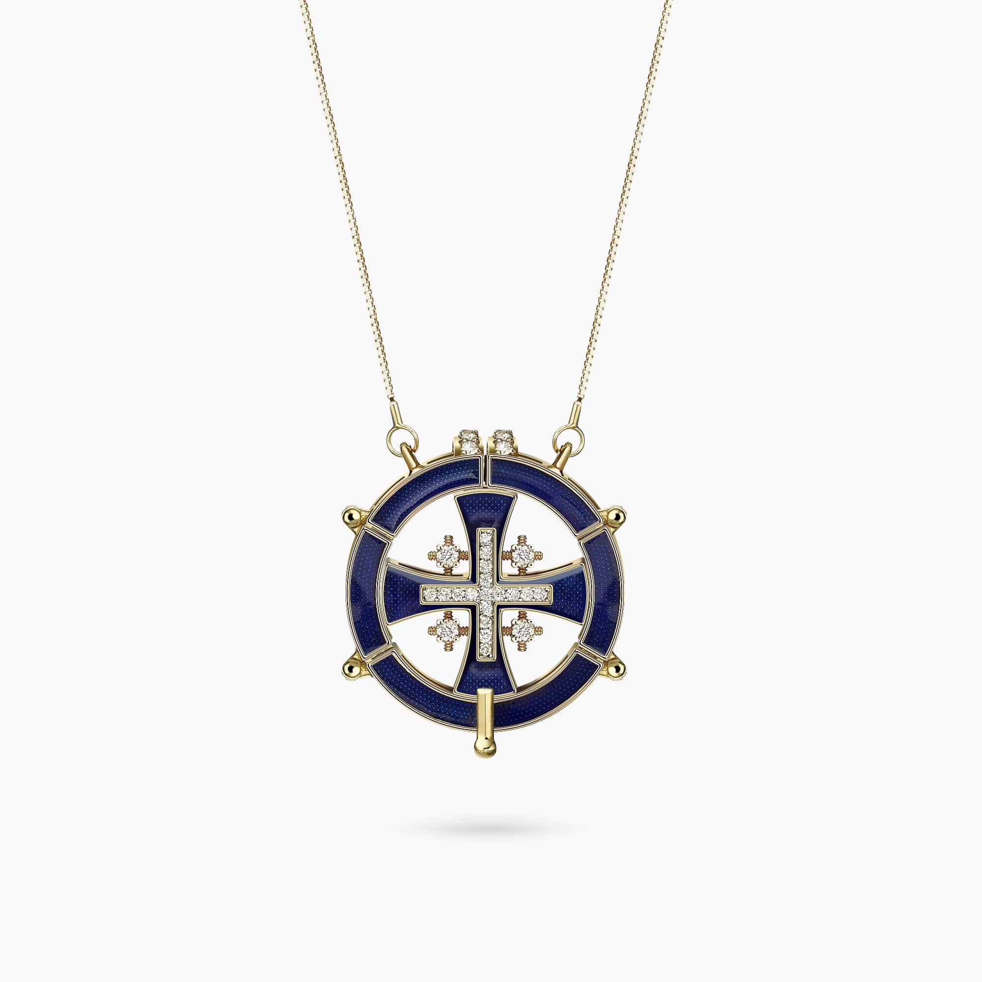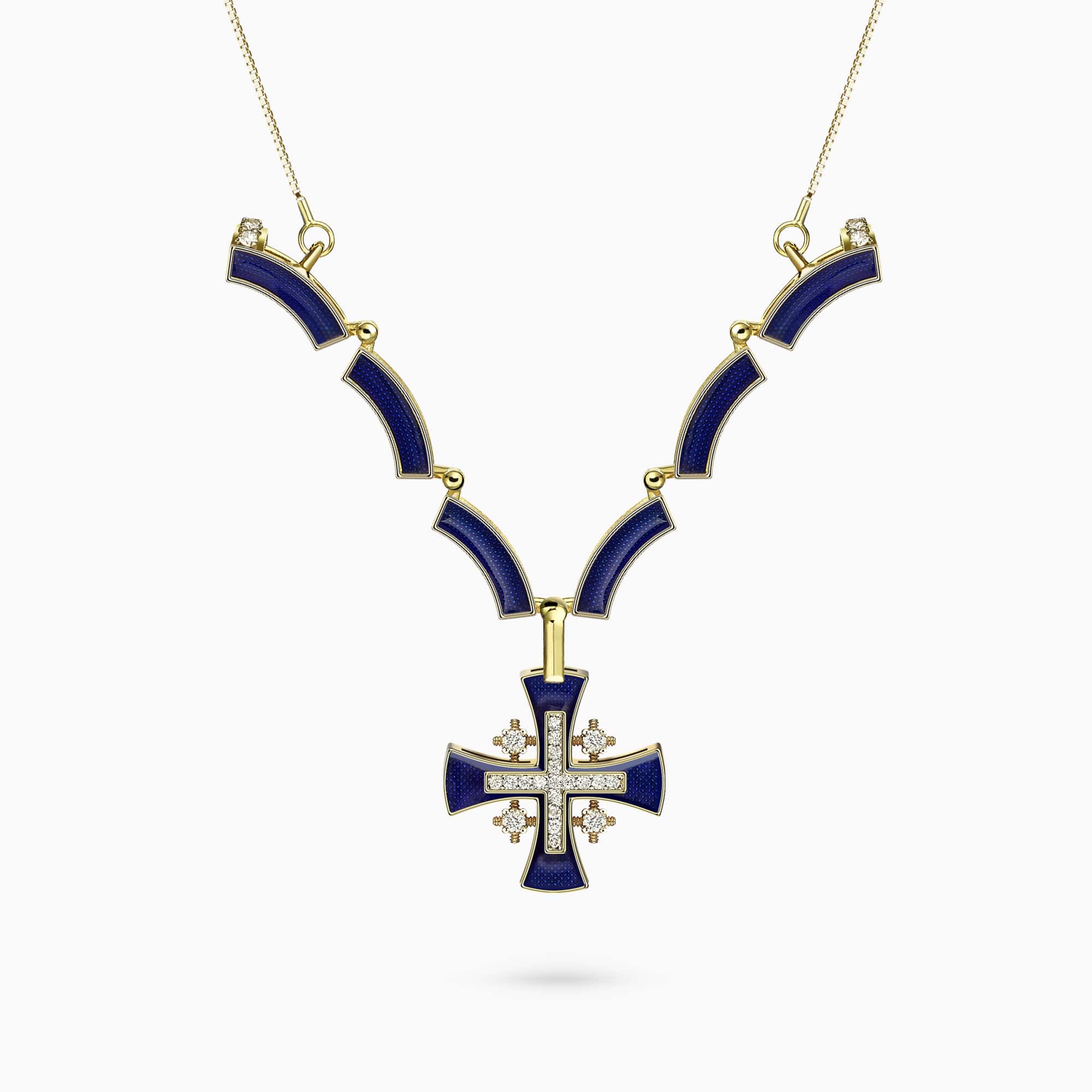 A Special, 14K Yellow Gold Cross Pendant, with 0.64Ct. Diamonds set in an Enamel Coating.