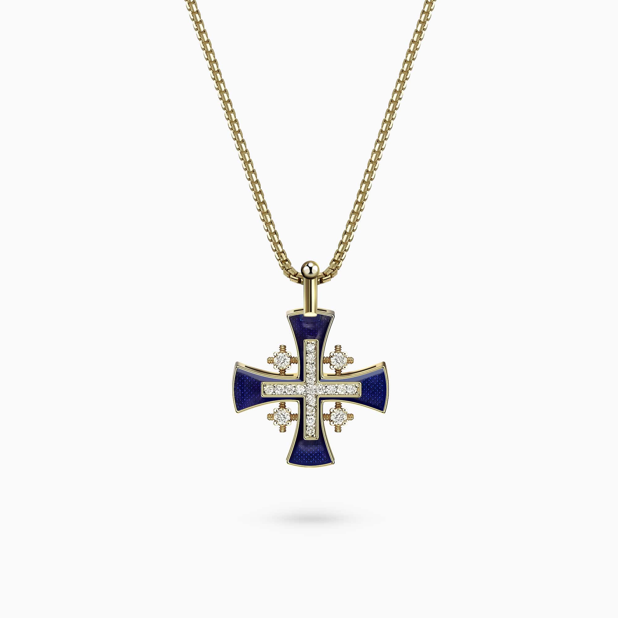 14K Yellow Gold Cross Pendant, with 0.11Ct. Diamonds set in an Enamel Coating.