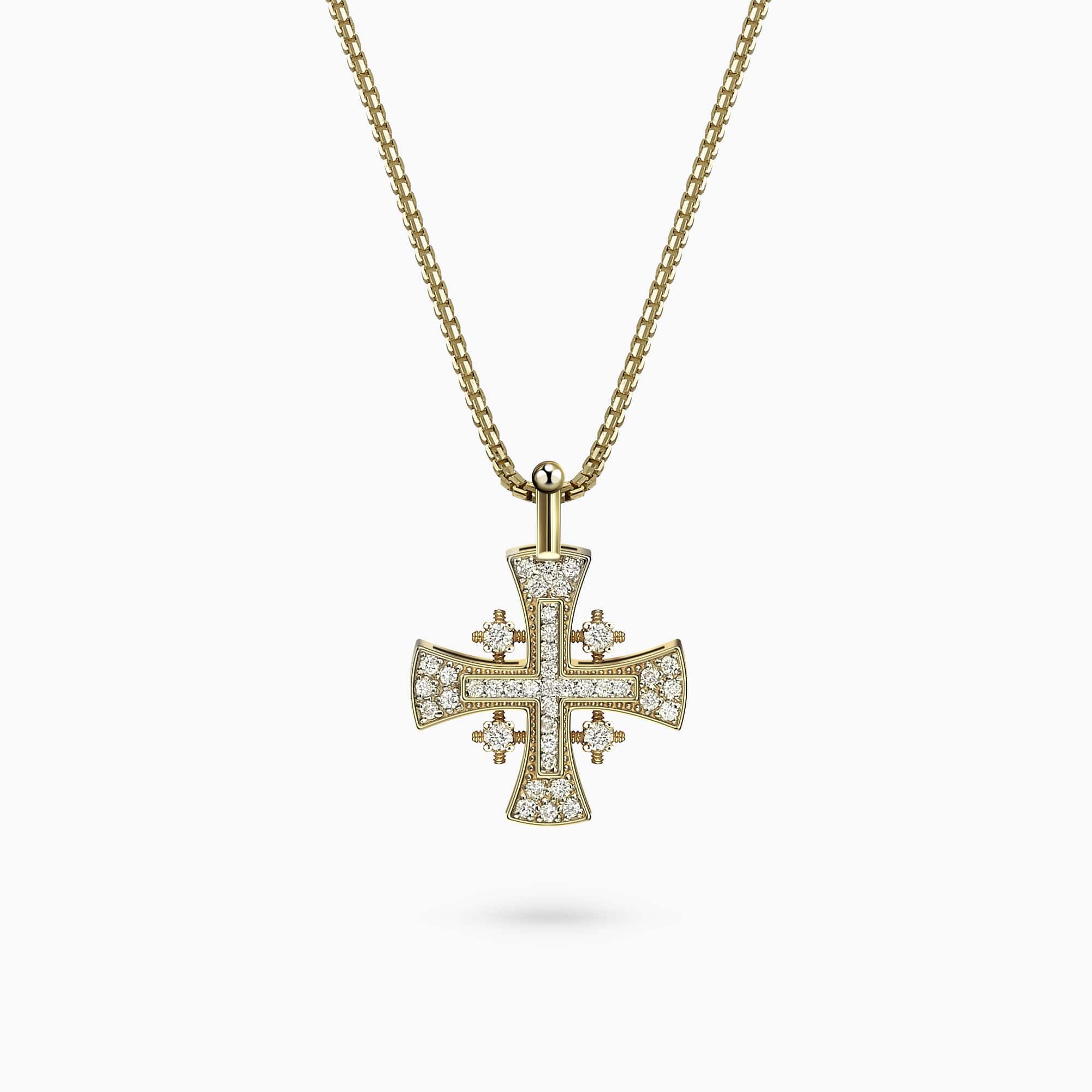 14K Yellow Gold Cross Pendant, with 0.29Ct. Diamonds set.