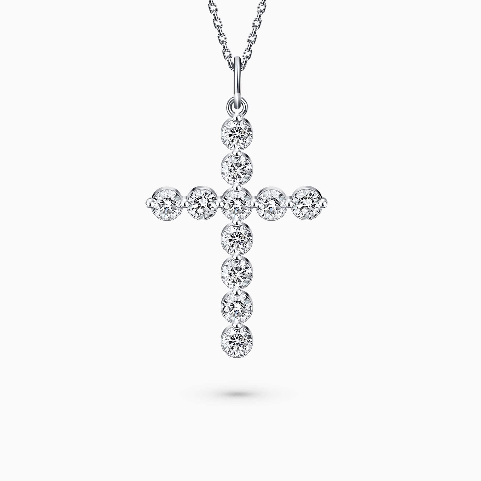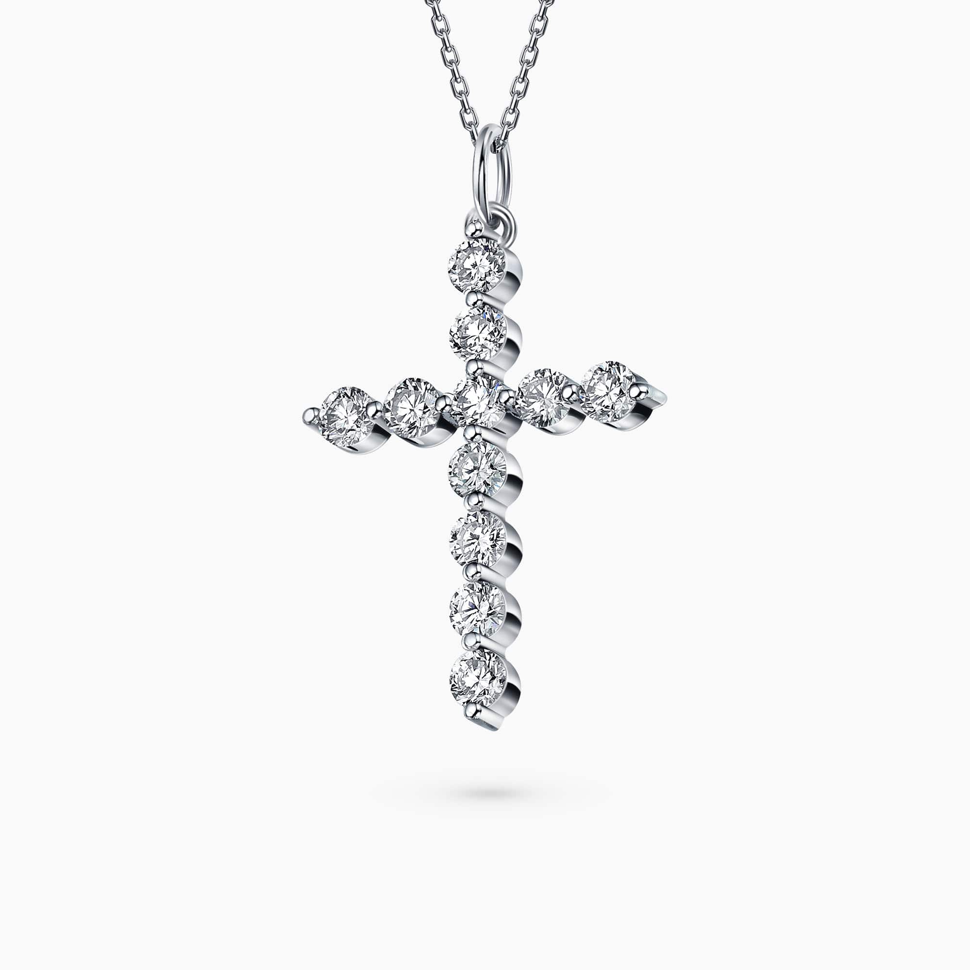 14K White Gold Cross Pendant, with 1.17Ct. Diamonds set.