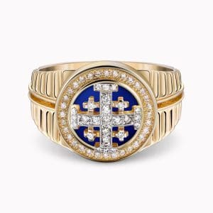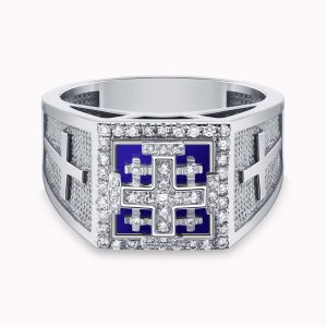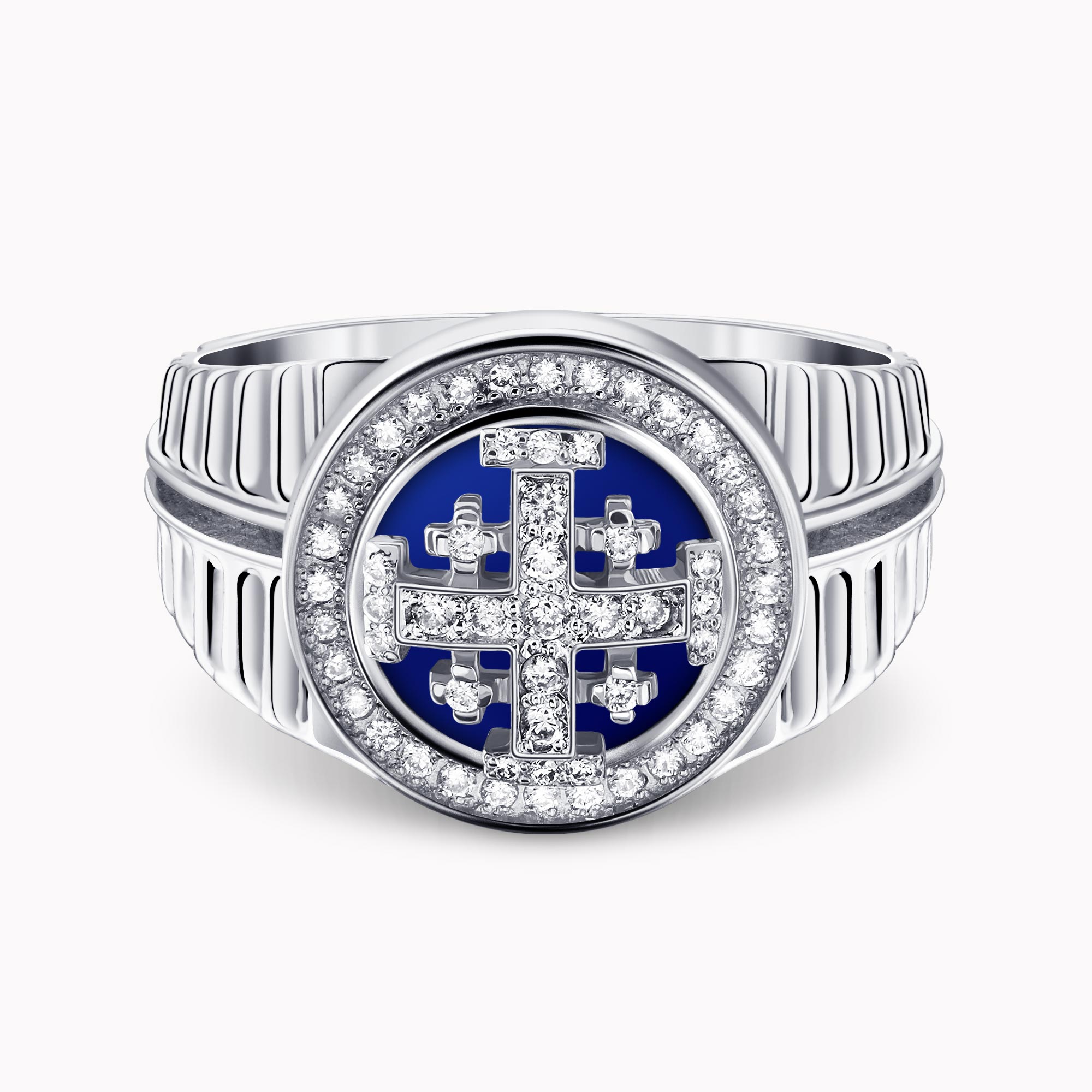 14K White Gold Cross Ring set with 0.28Ct. Diamonds and Enamel Coating.