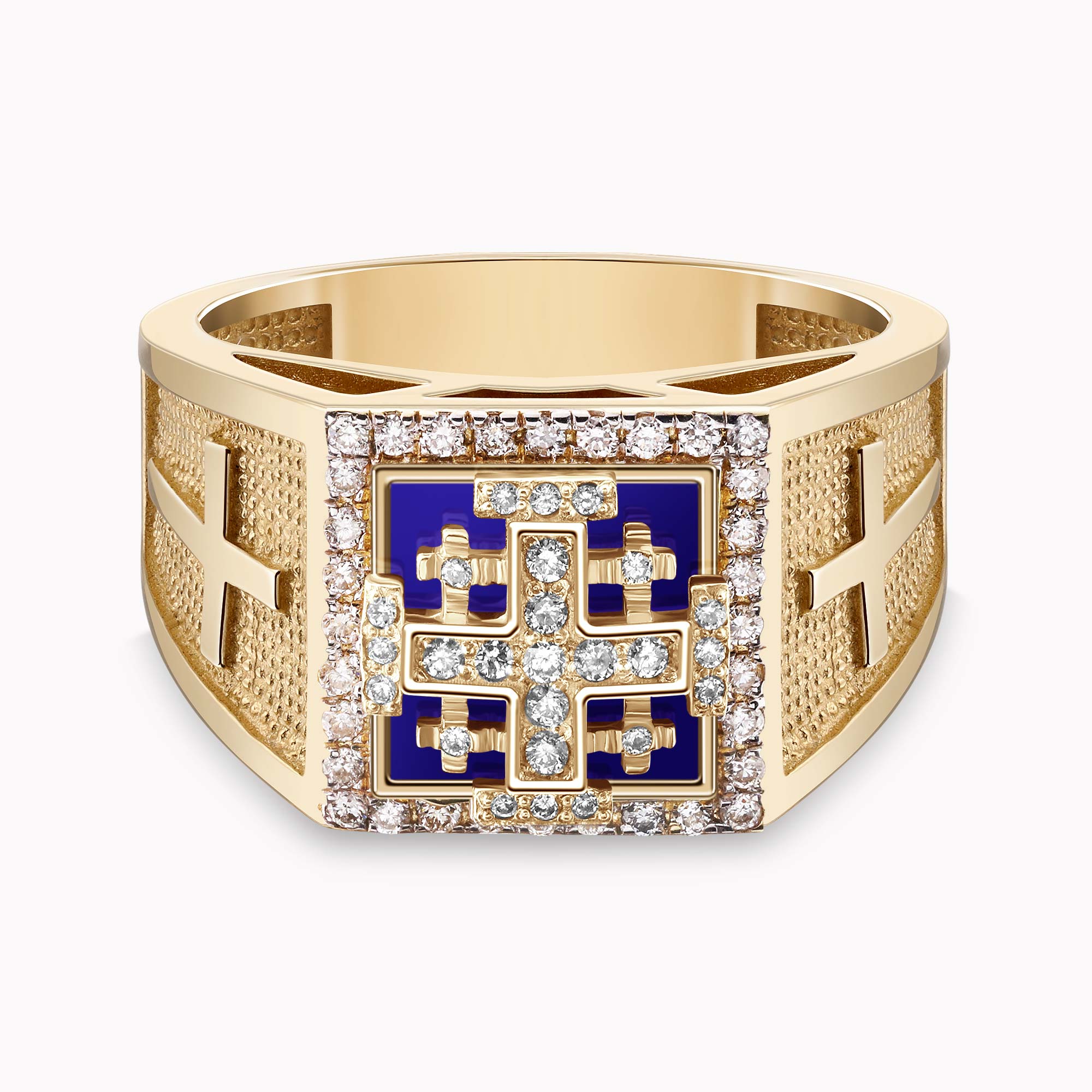 14K Yellow Gold Cross Ring set with 0.36Ct. Diamonds and Enamel Coating.