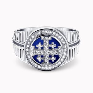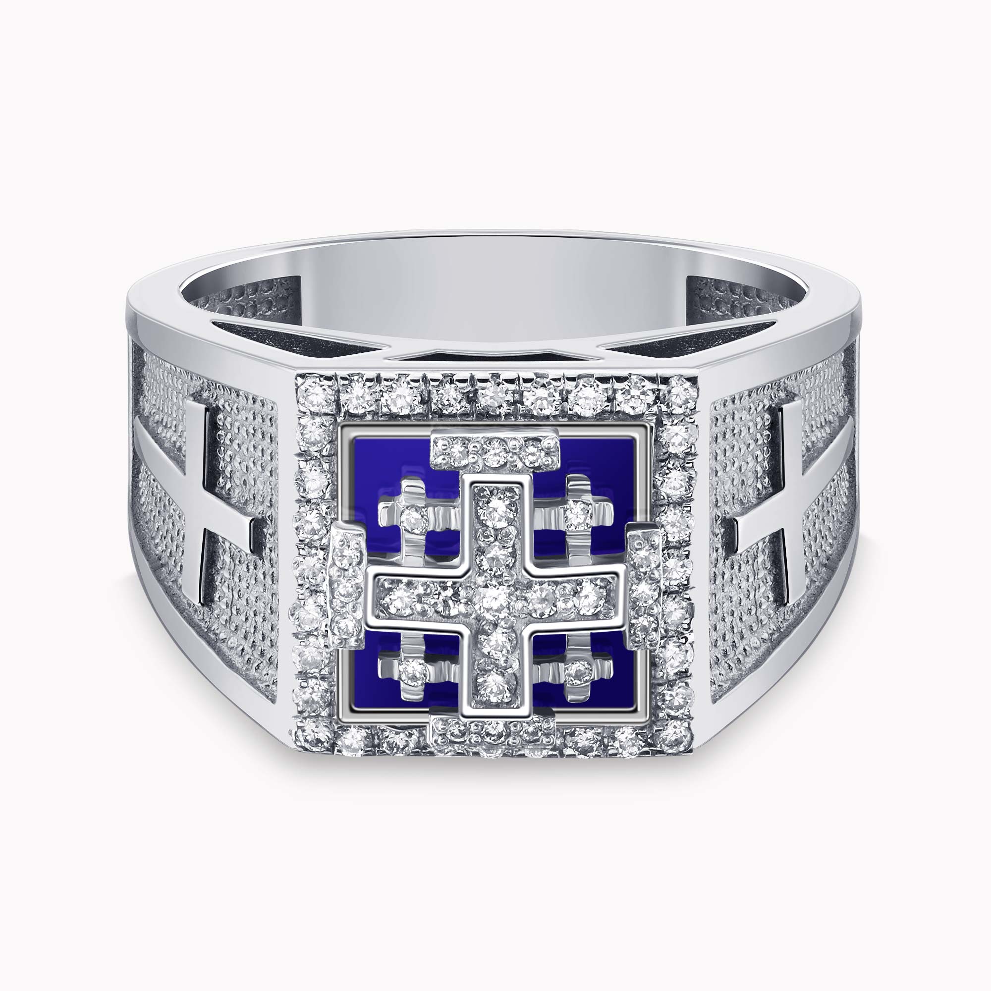 14K White Gold Cross Ring set with 0.36Ct. Diamonds and Enamel Coating.