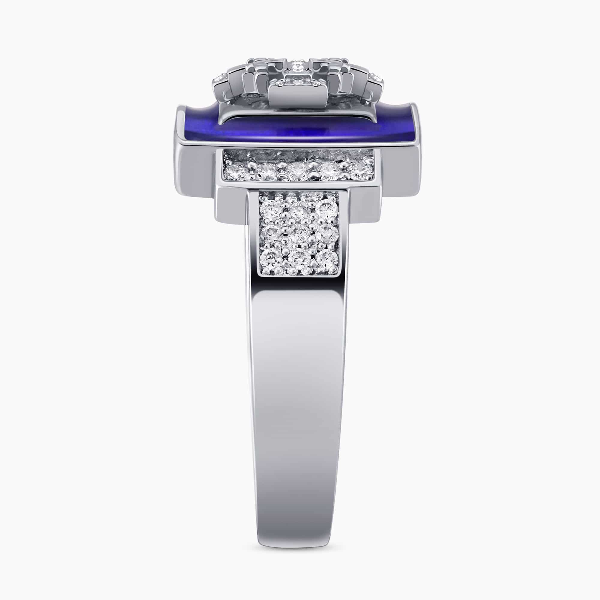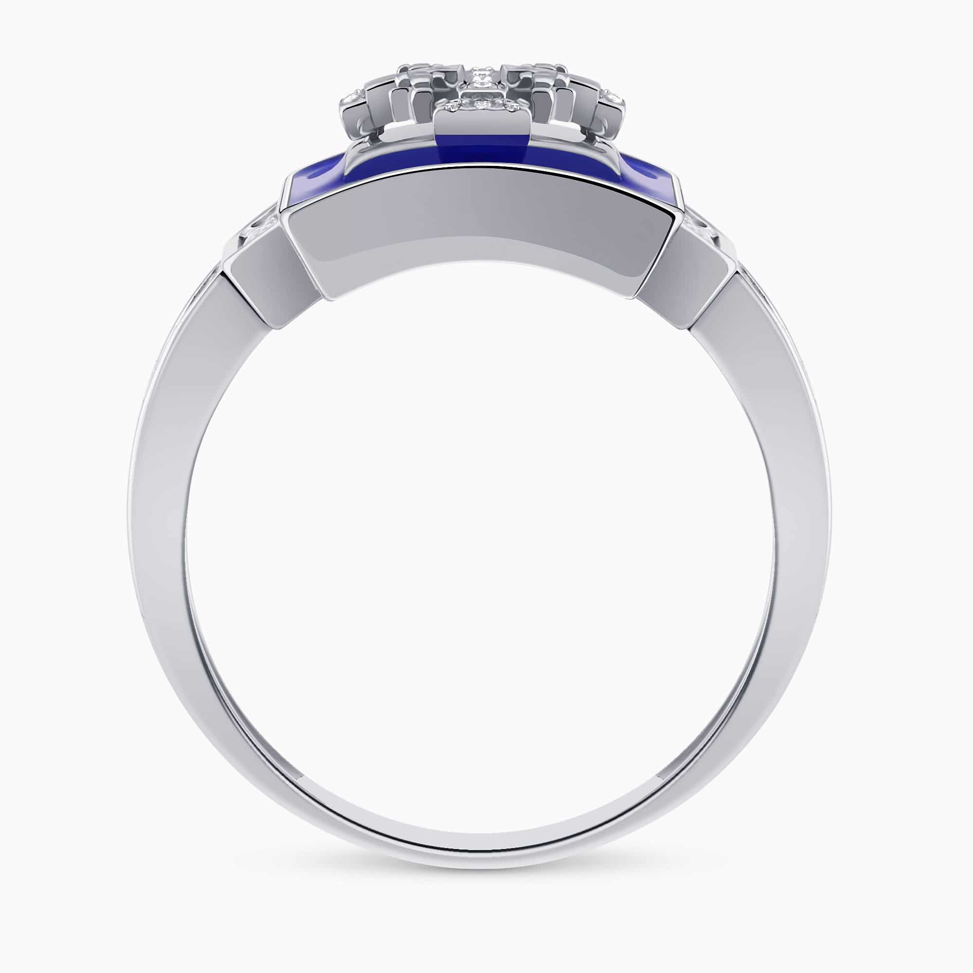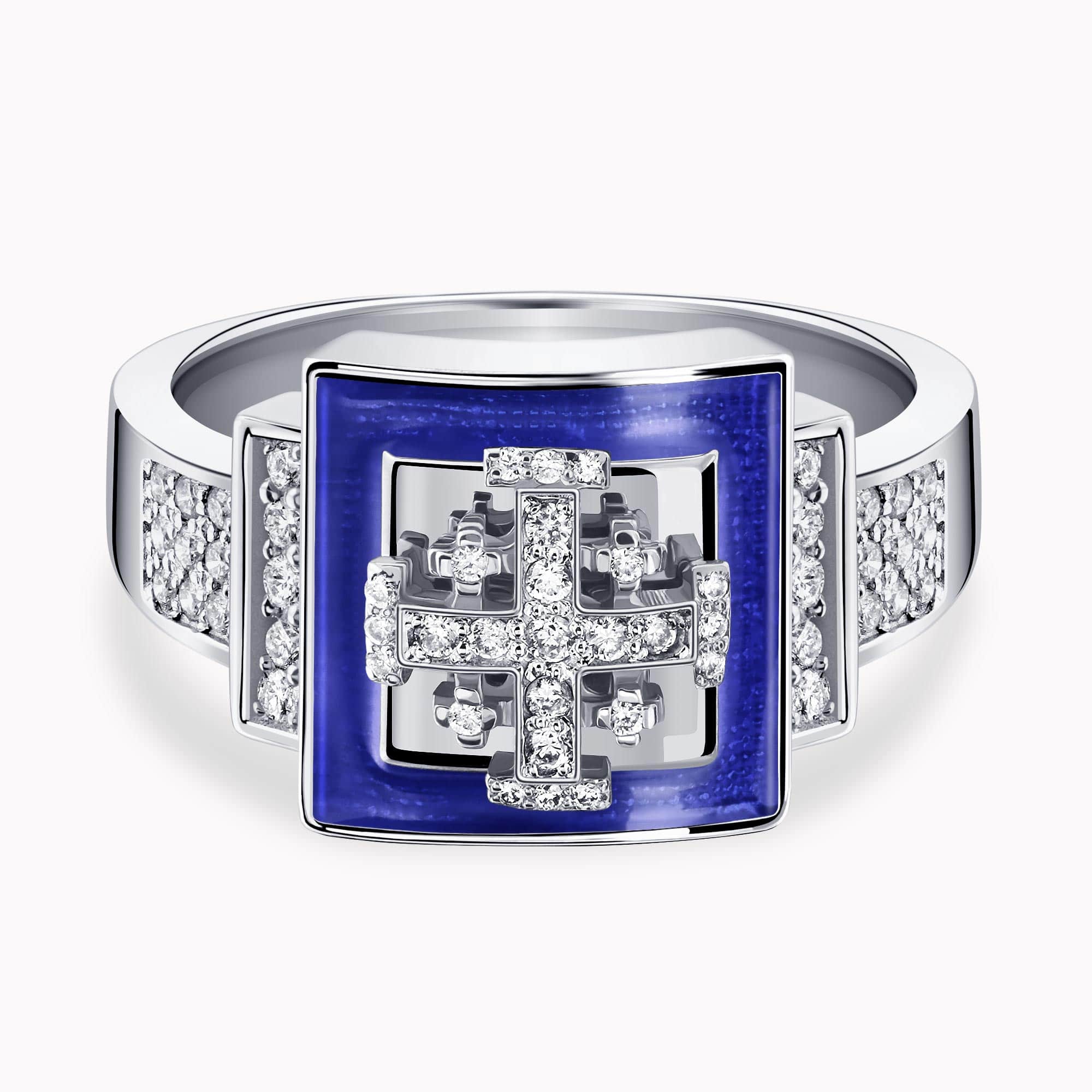 14K White Gold Cross Ring set with 0.35Ct. Diamonds and Enamel Coating.