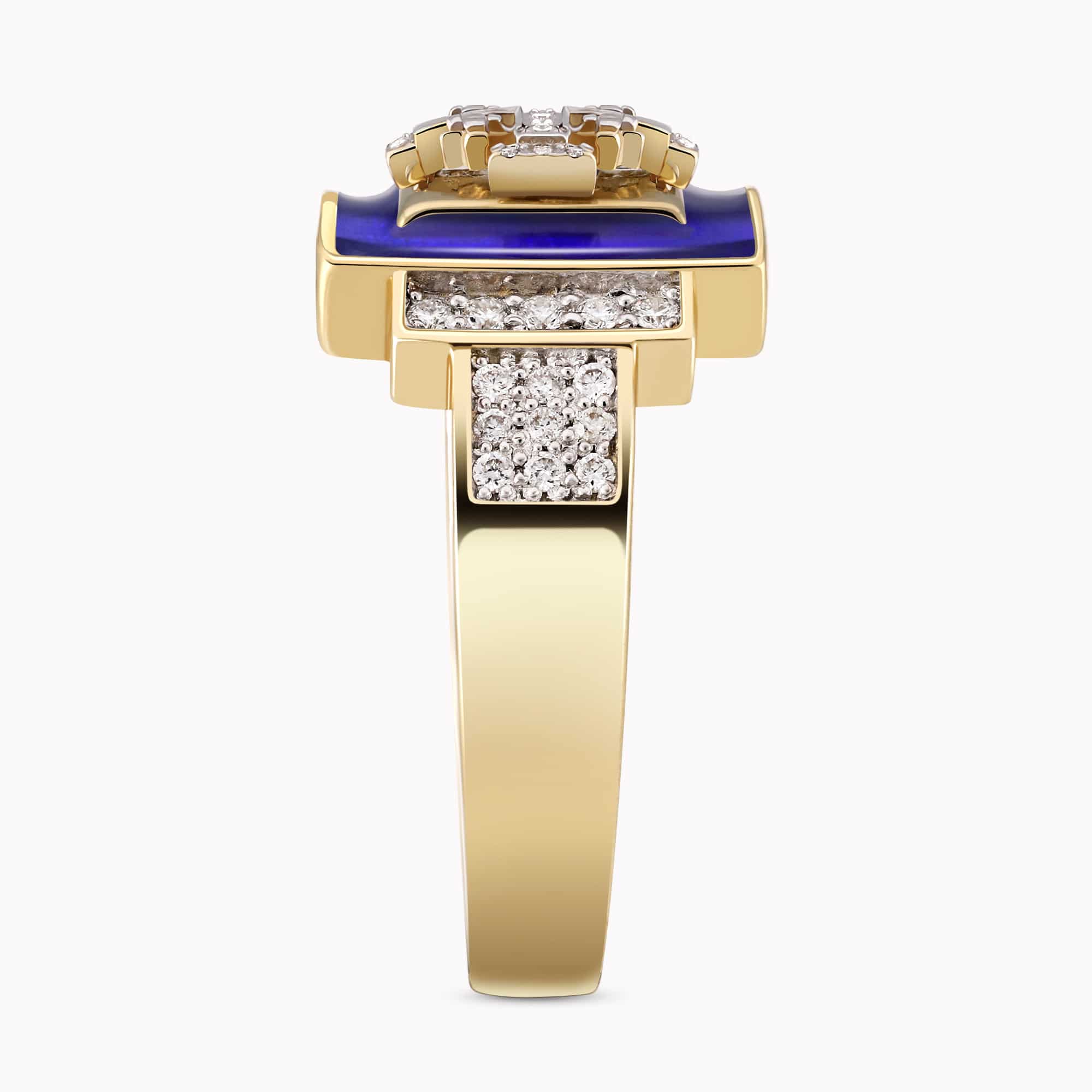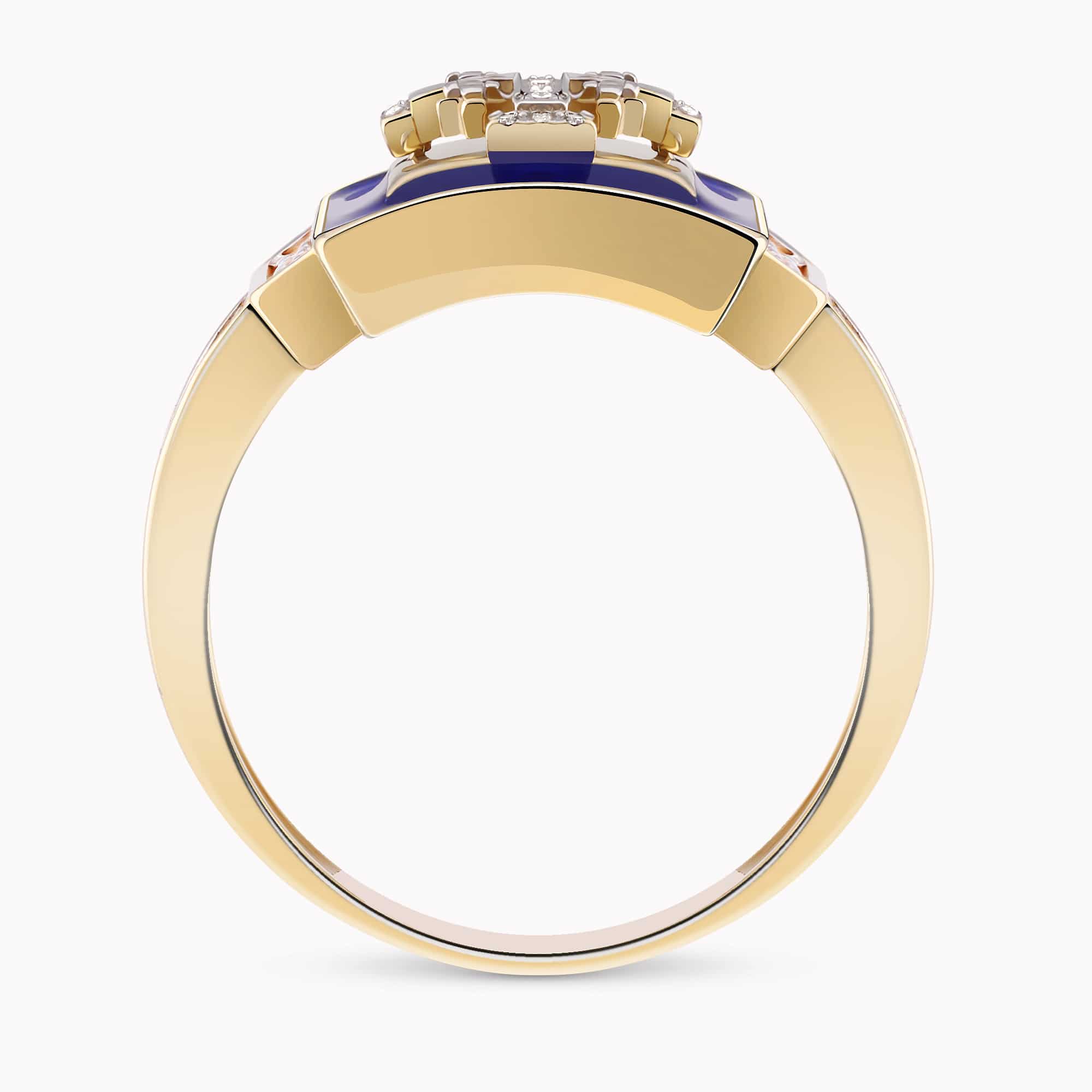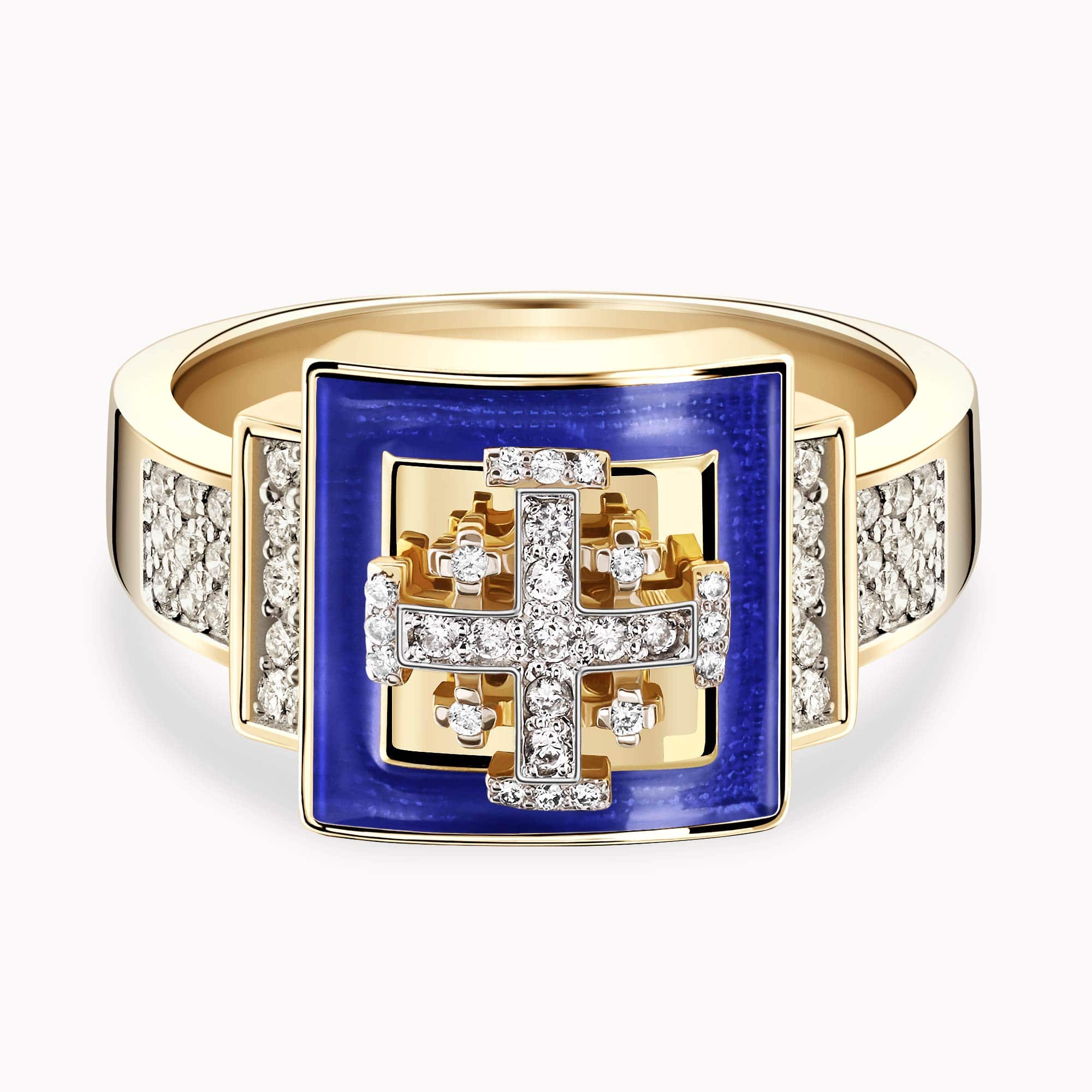 14K Yellow Gold Cross Ring set with 0.35Ct. Diamonds and Enamel Coating.