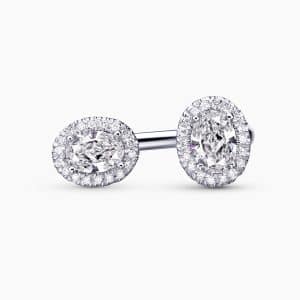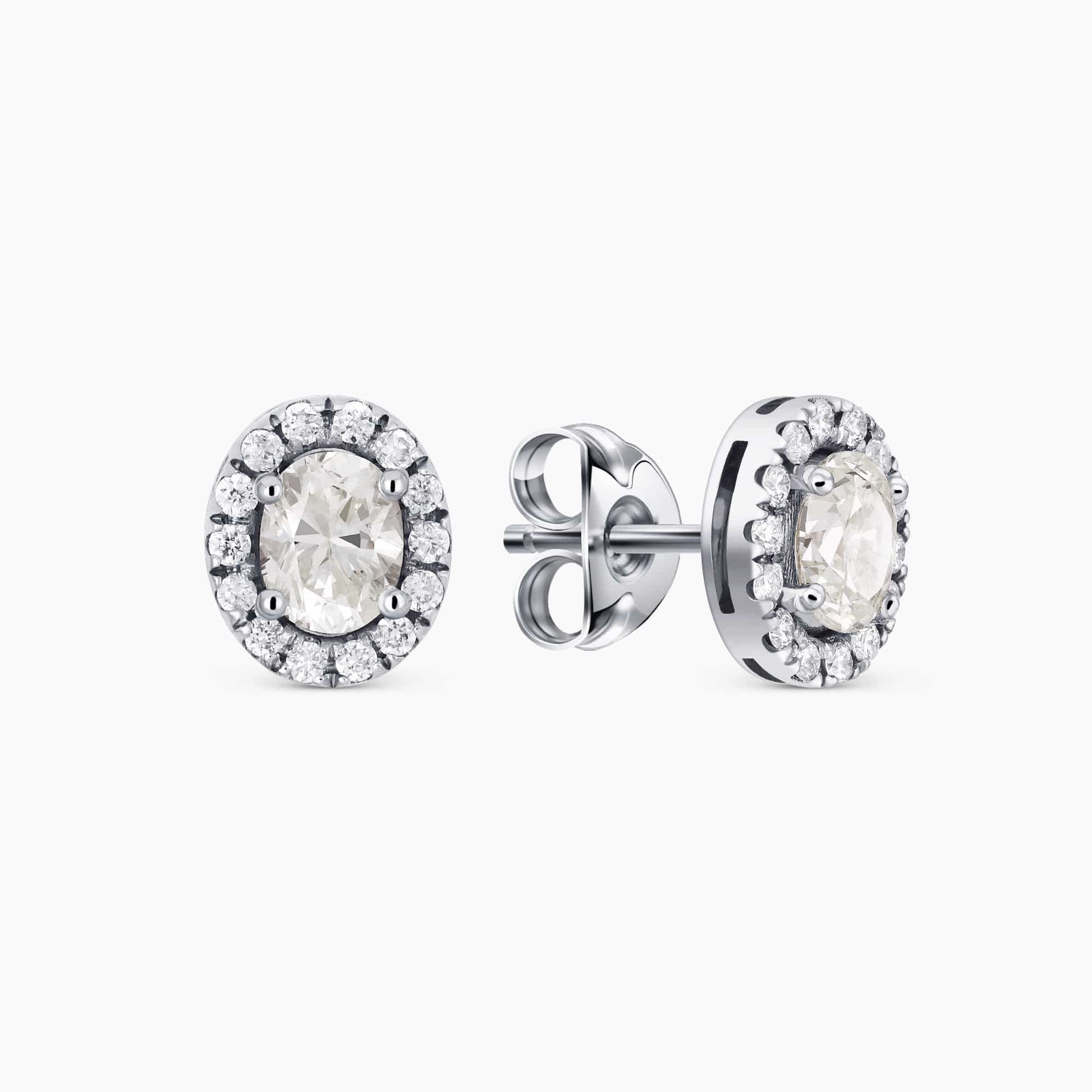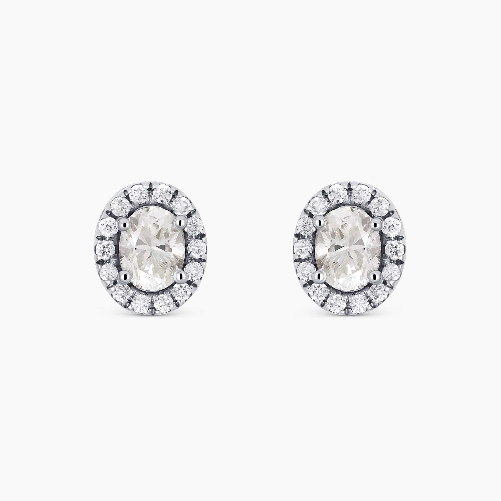 0.54Ct. Oval cut center Diamonds with 0.14Ct Diamond setting mounted in 14K White Gold Earrings .