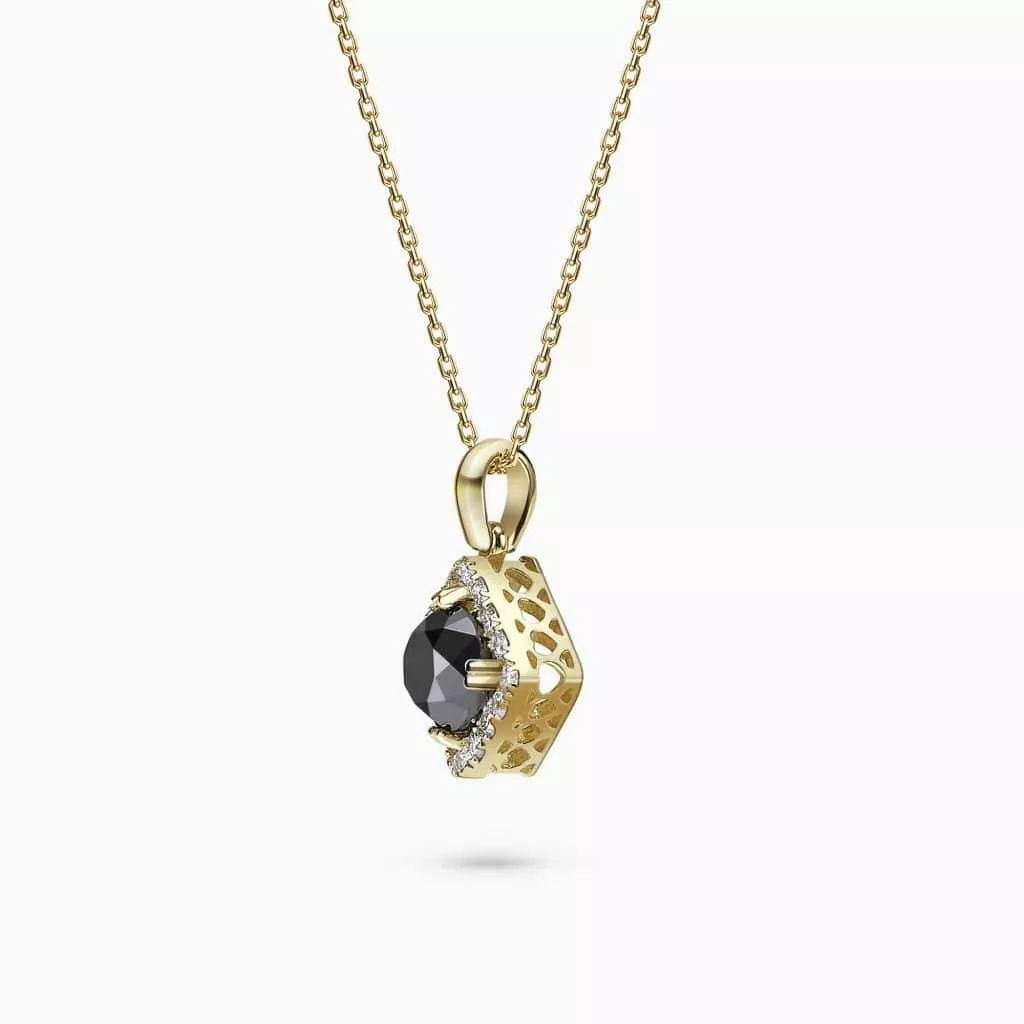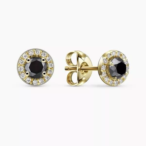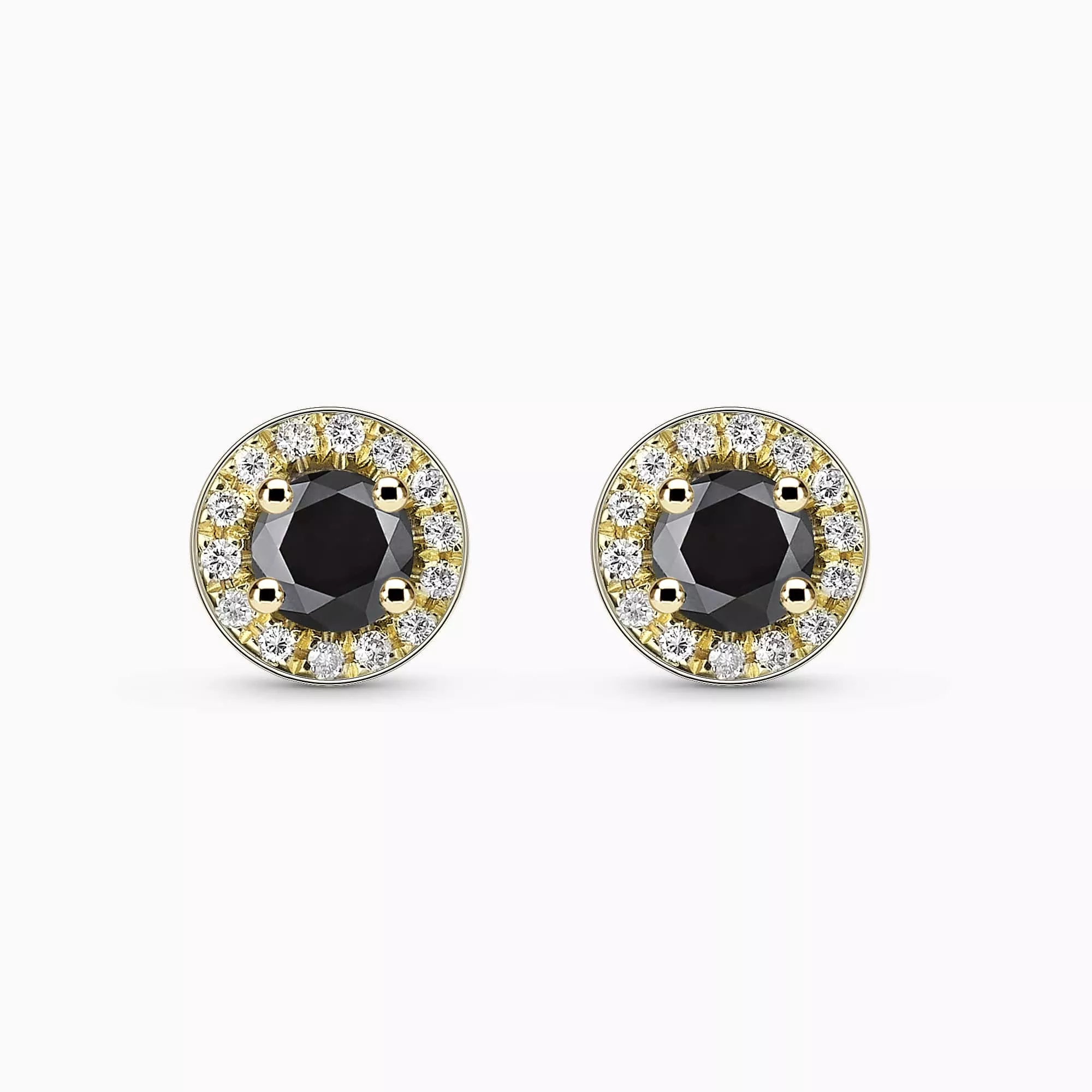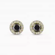 0.76Ct. (Total Weight) Black Diamonds center stones, with 0.22Ct. Diamond Halo setting in 14K Yellow Gold Earrings.