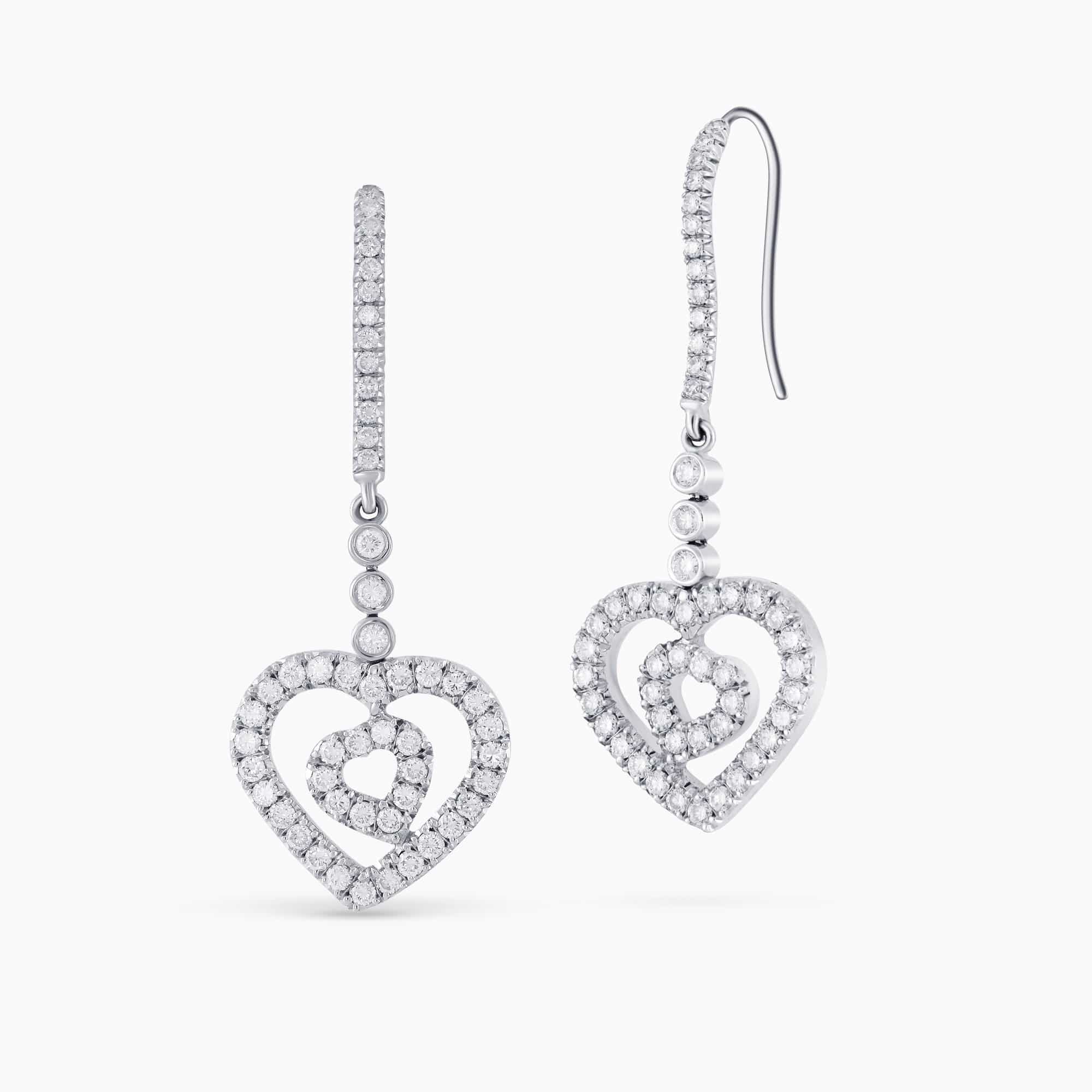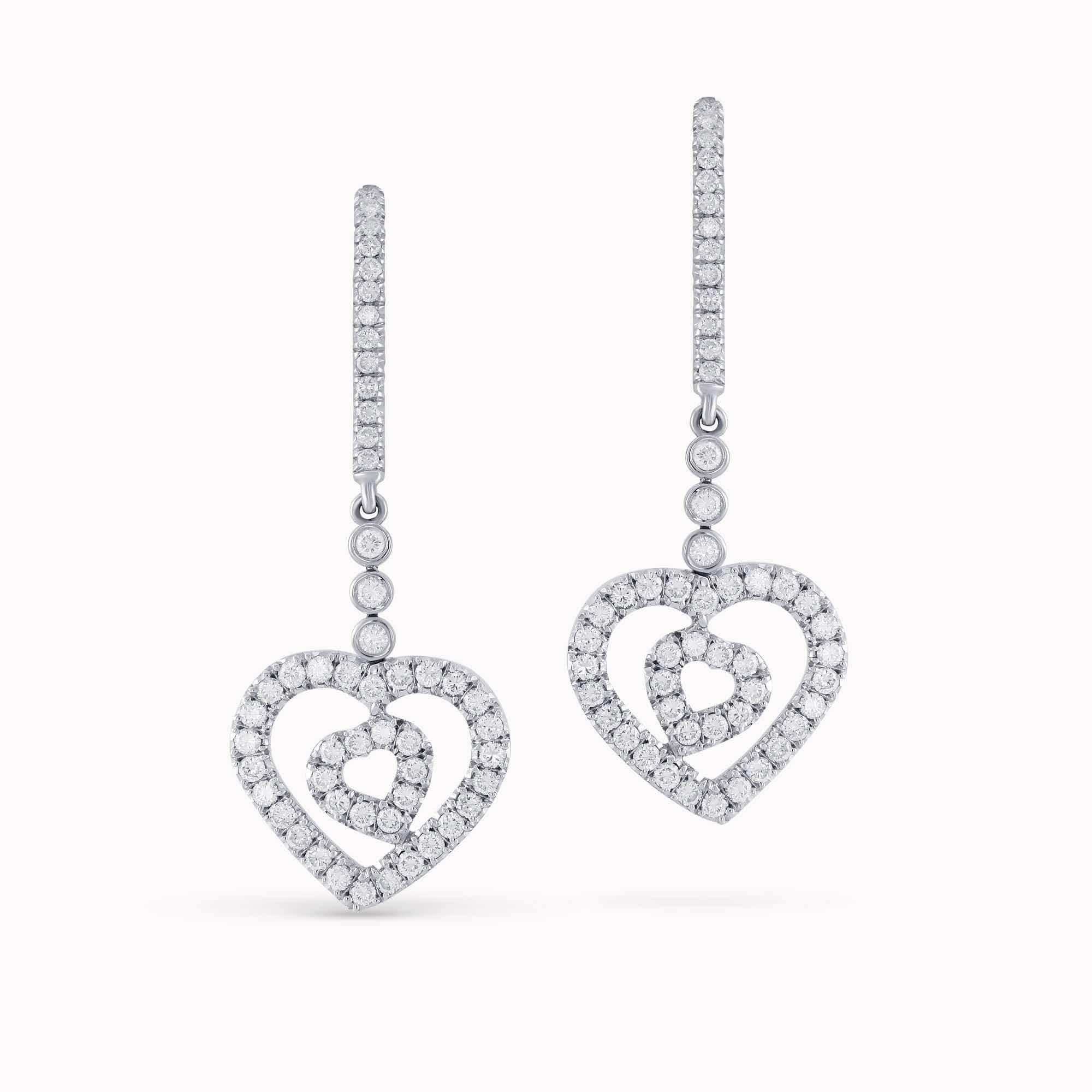 1.67Ct. Diamonds set in 14K White Gold “Heart” Designed Earrings .