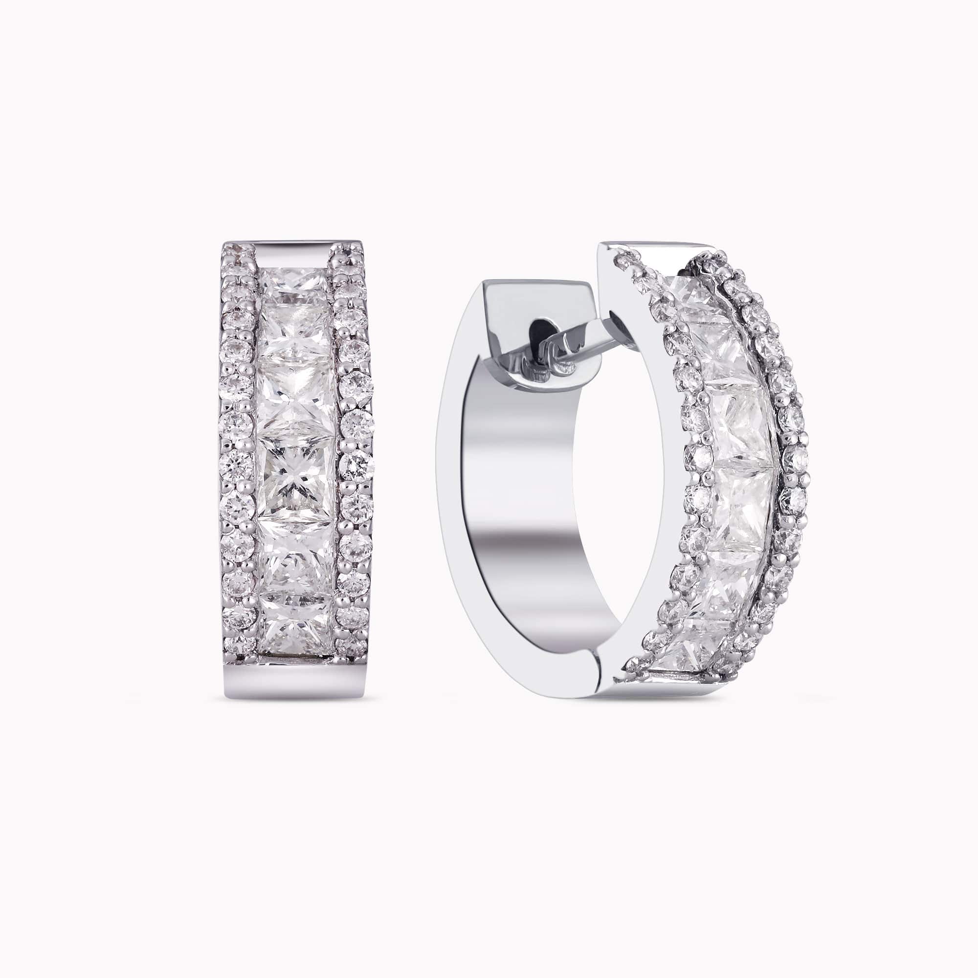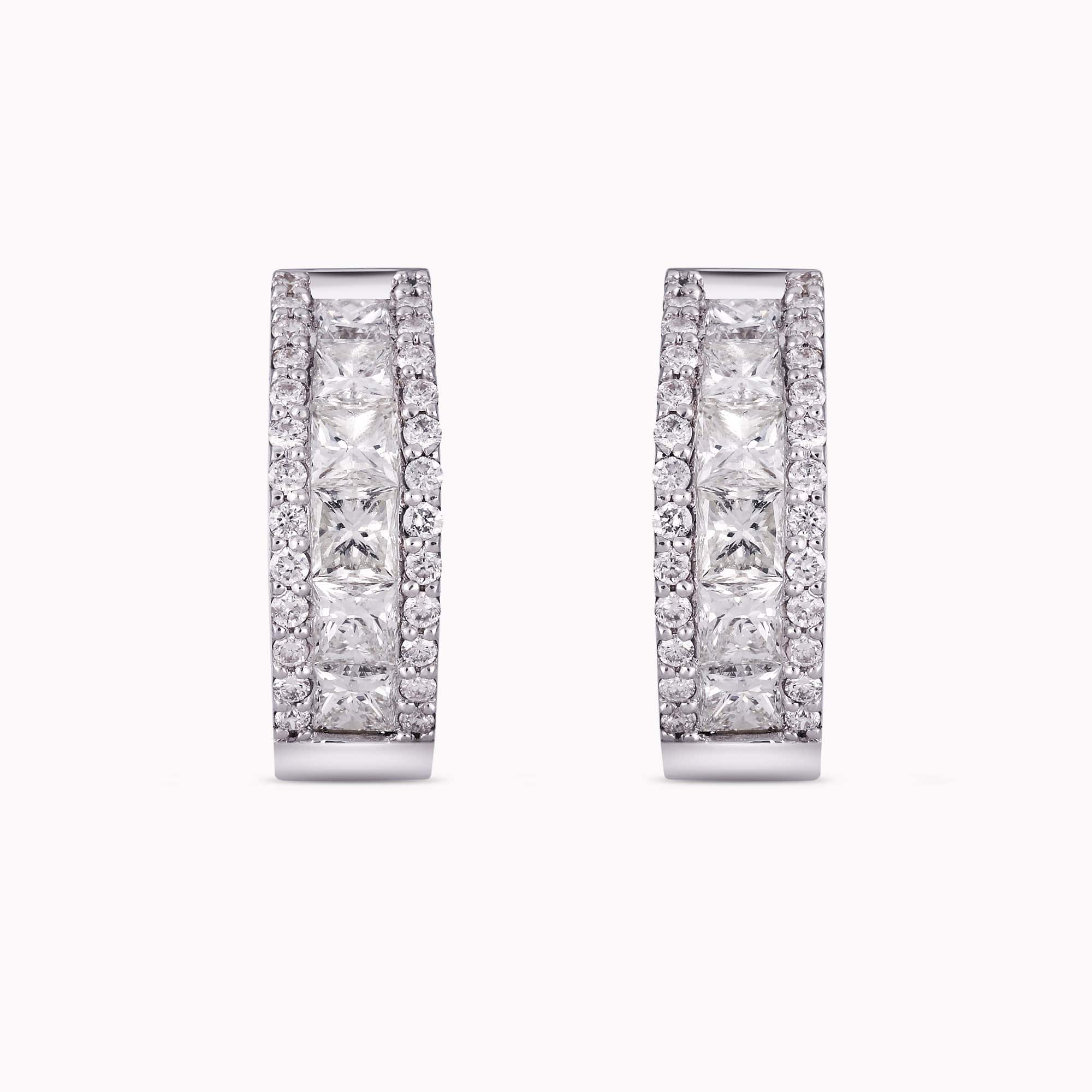 1.90Ct. Princess Cut Diamonds set with 0.32Ct. Diamonds mounted in 18K White Gold Hoop Earrings .
