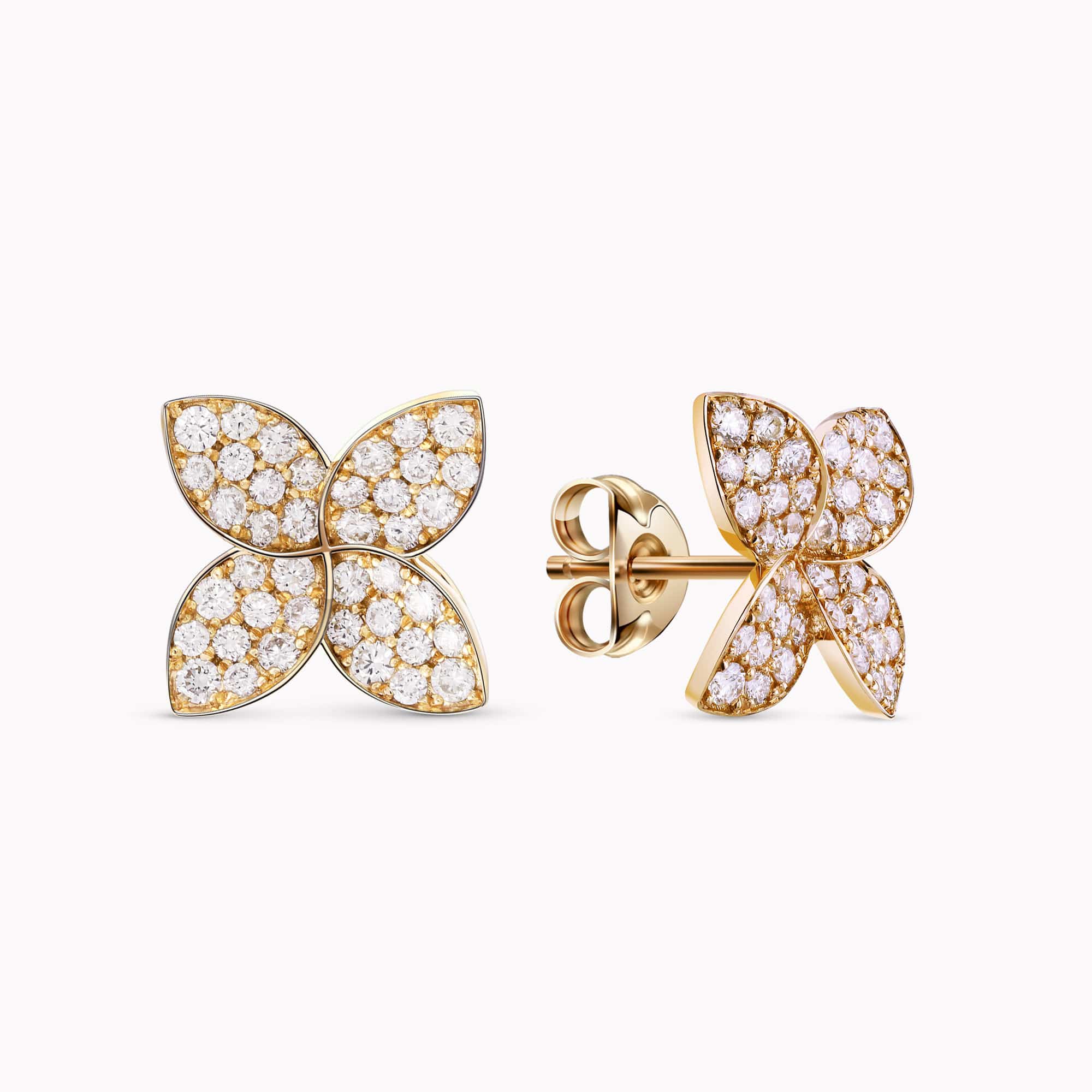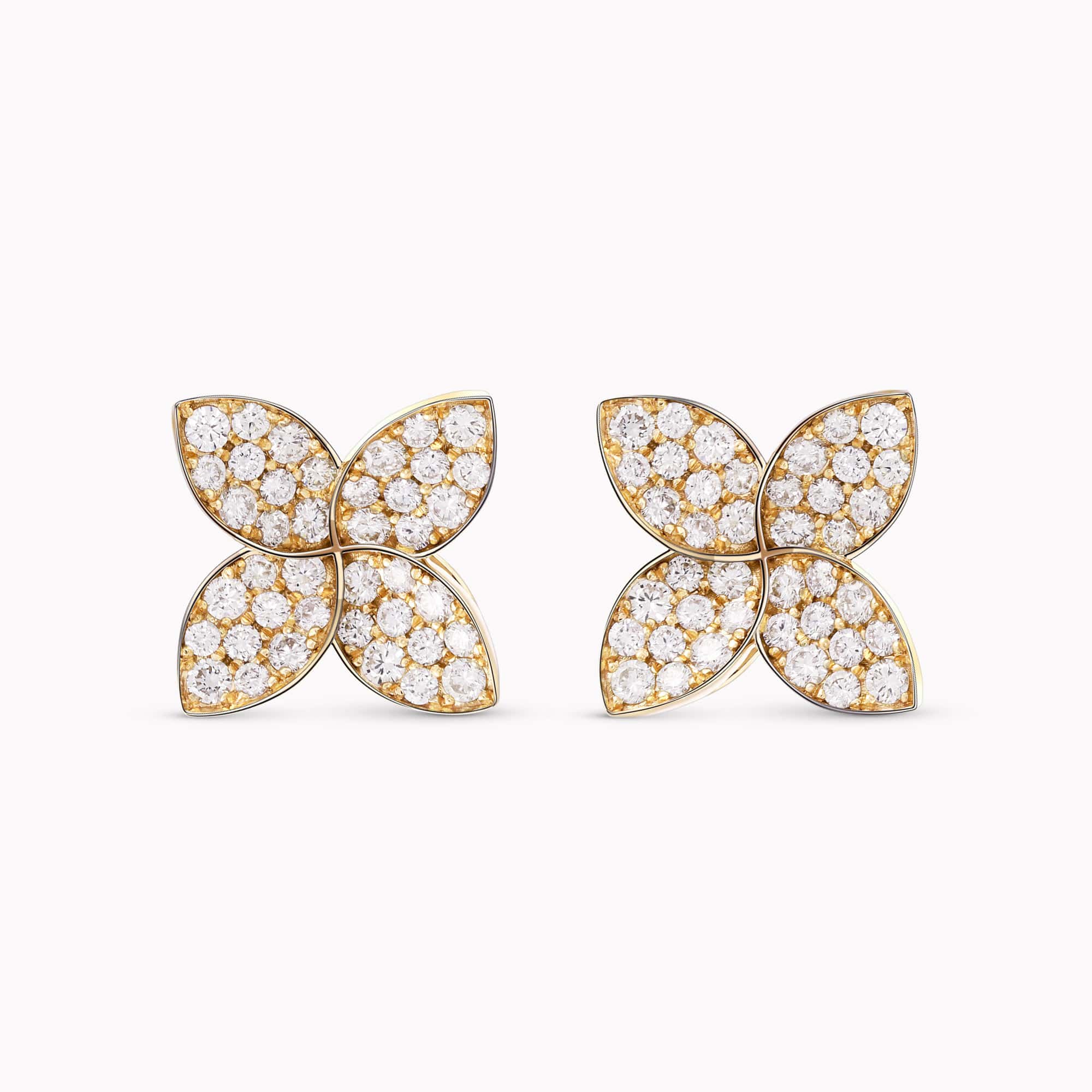 0.90Ct. Diamond Flower shaped Earrings mounted in 14K Yellow Gold .