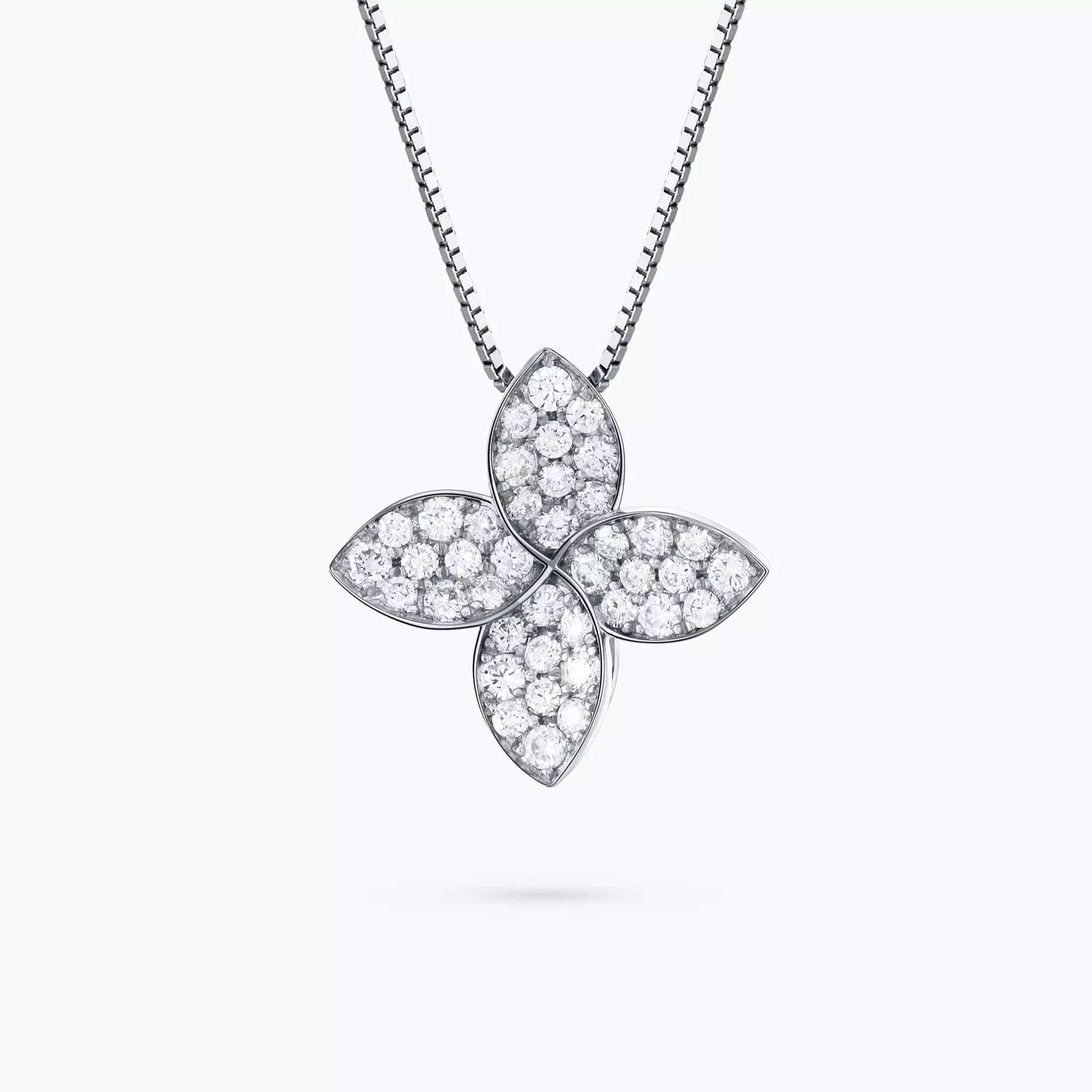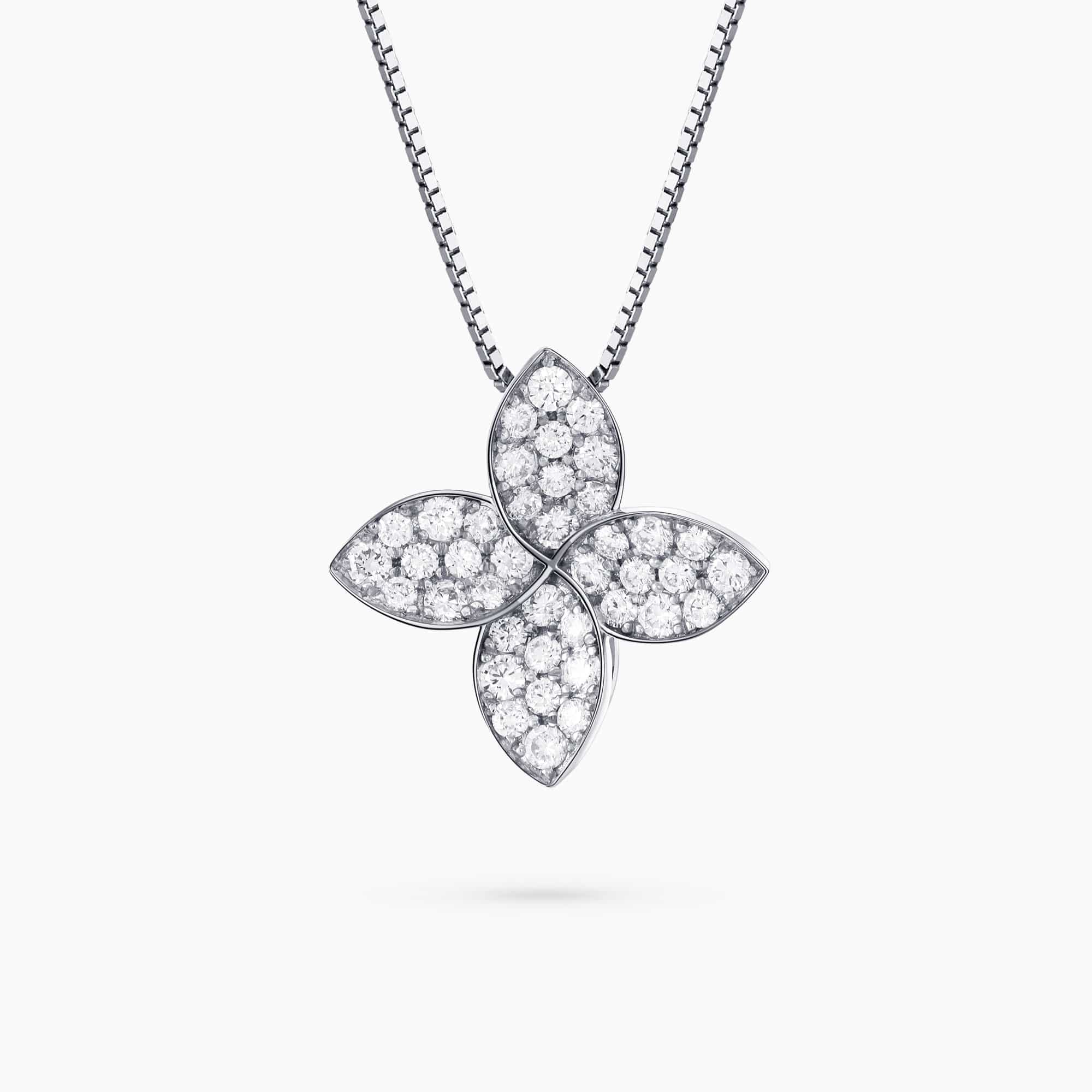 0.93Ct. Diamonds mounted in 18K White Gold Flower Design Pendant.
