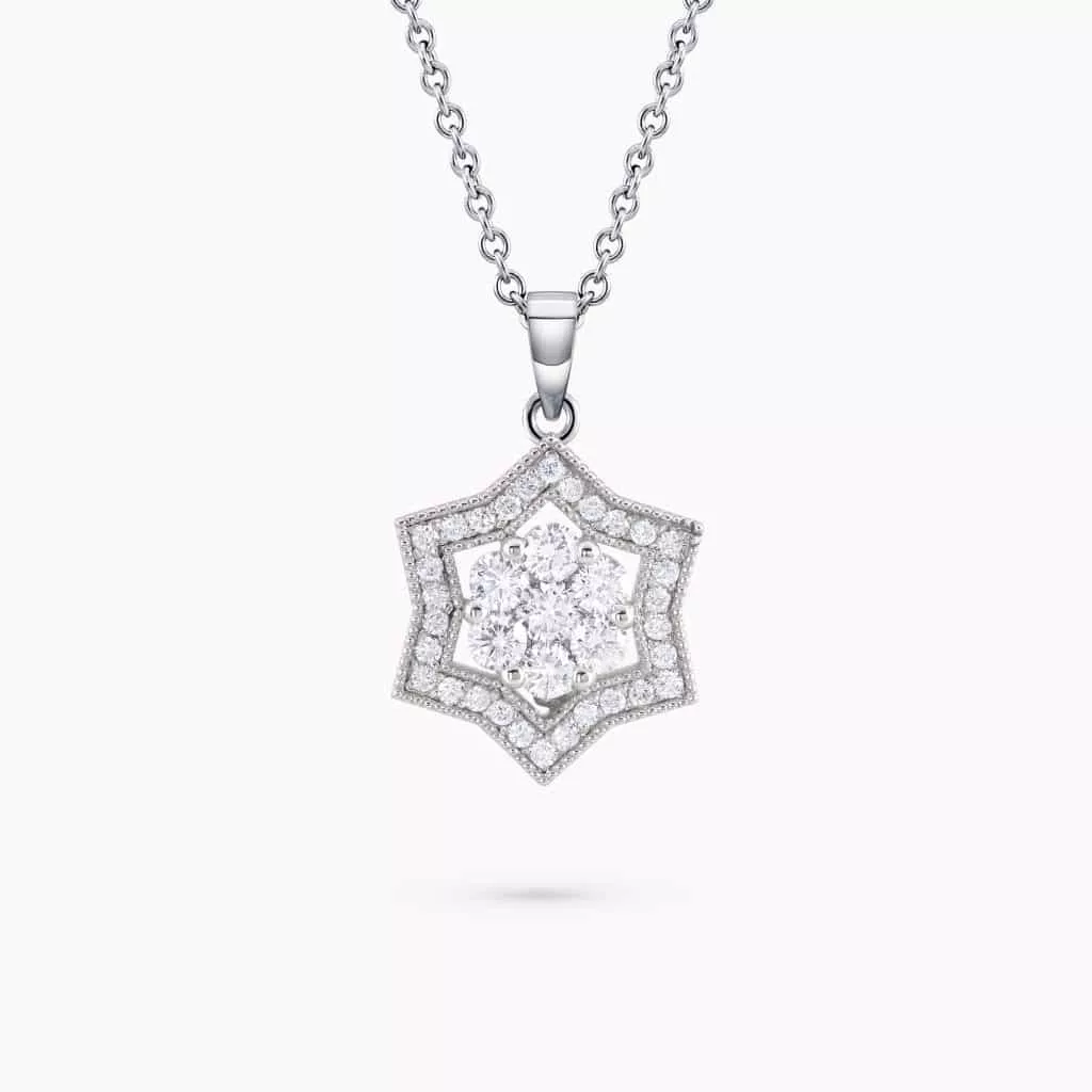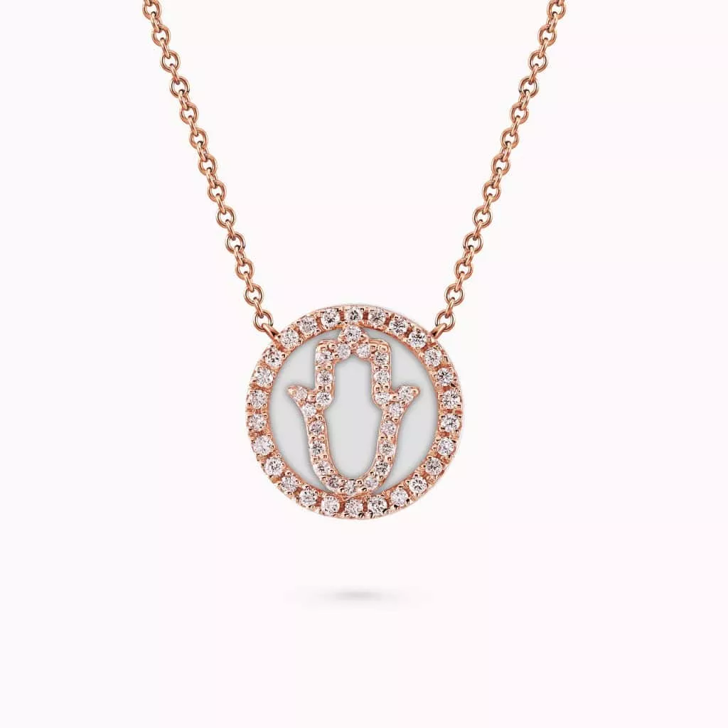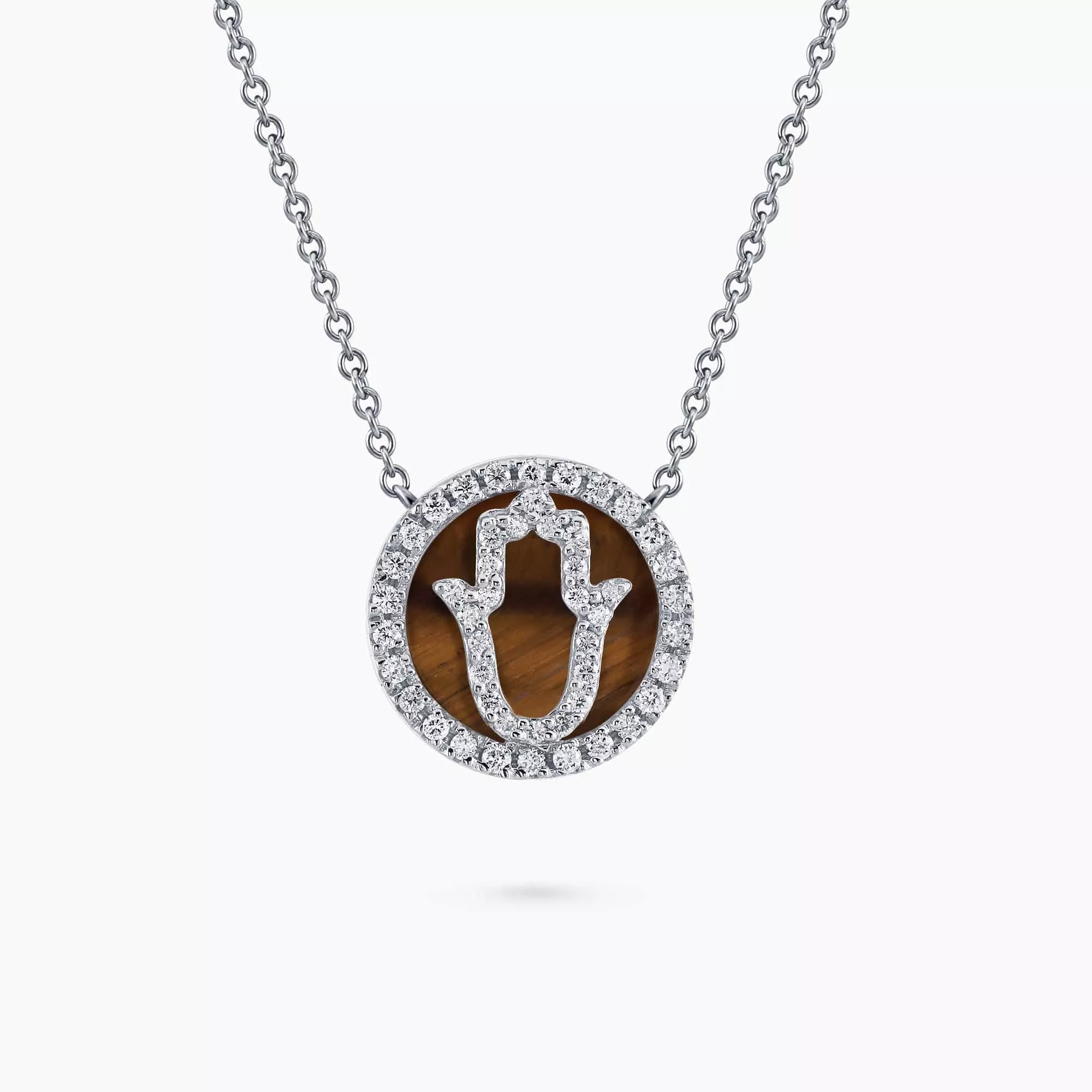 14K White Gold “Hamsa” Pendant with 0.35Ct. Diamonds setting.