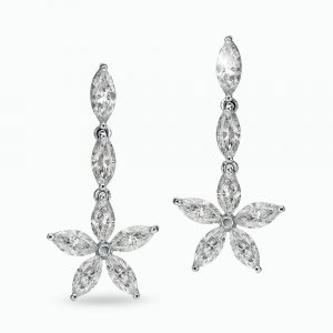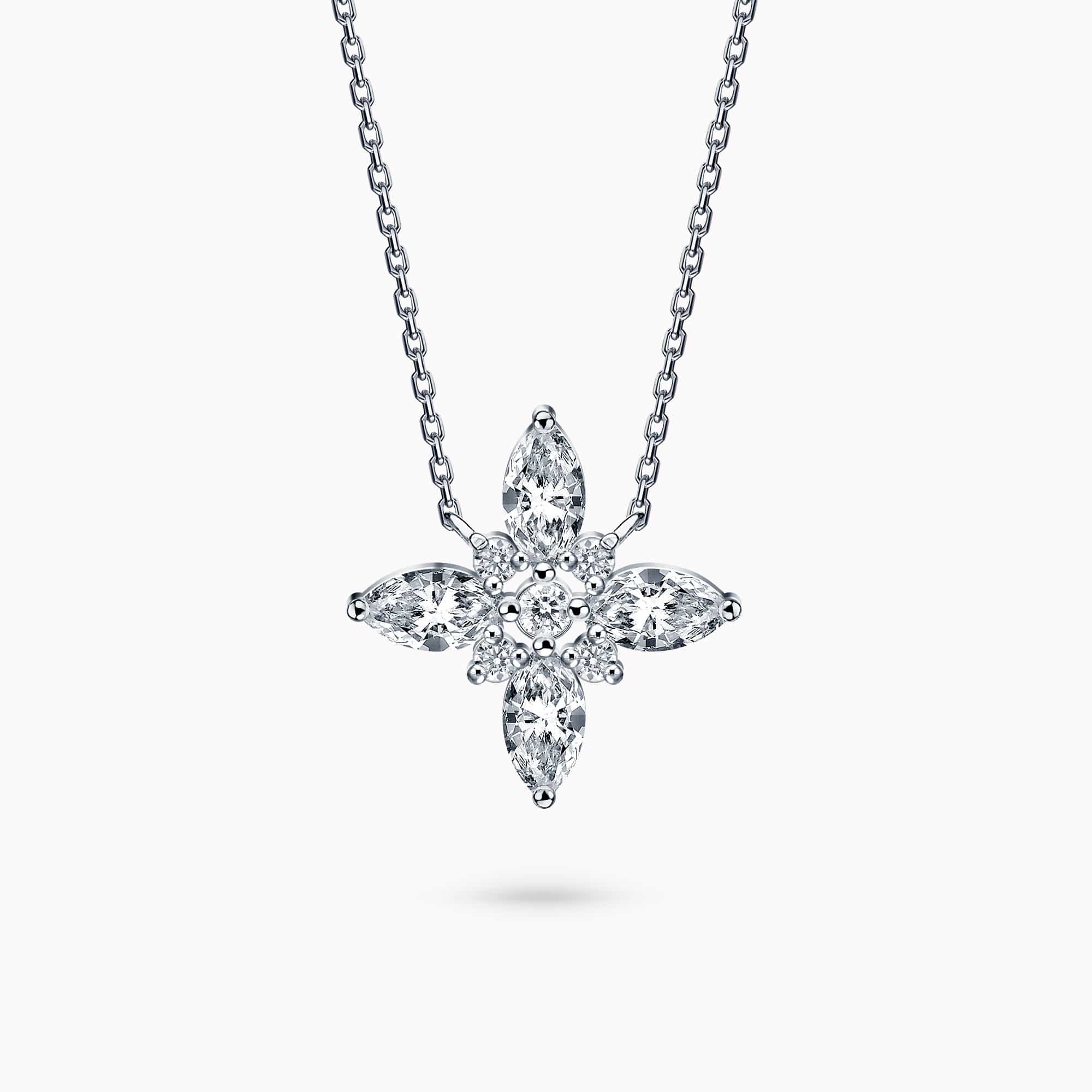 0.68Ct. (Total Weight) Marquise Cut Diamond Flower Shaped Pendant Set with 0.06Ct. Diamonds in 14K White Gold.