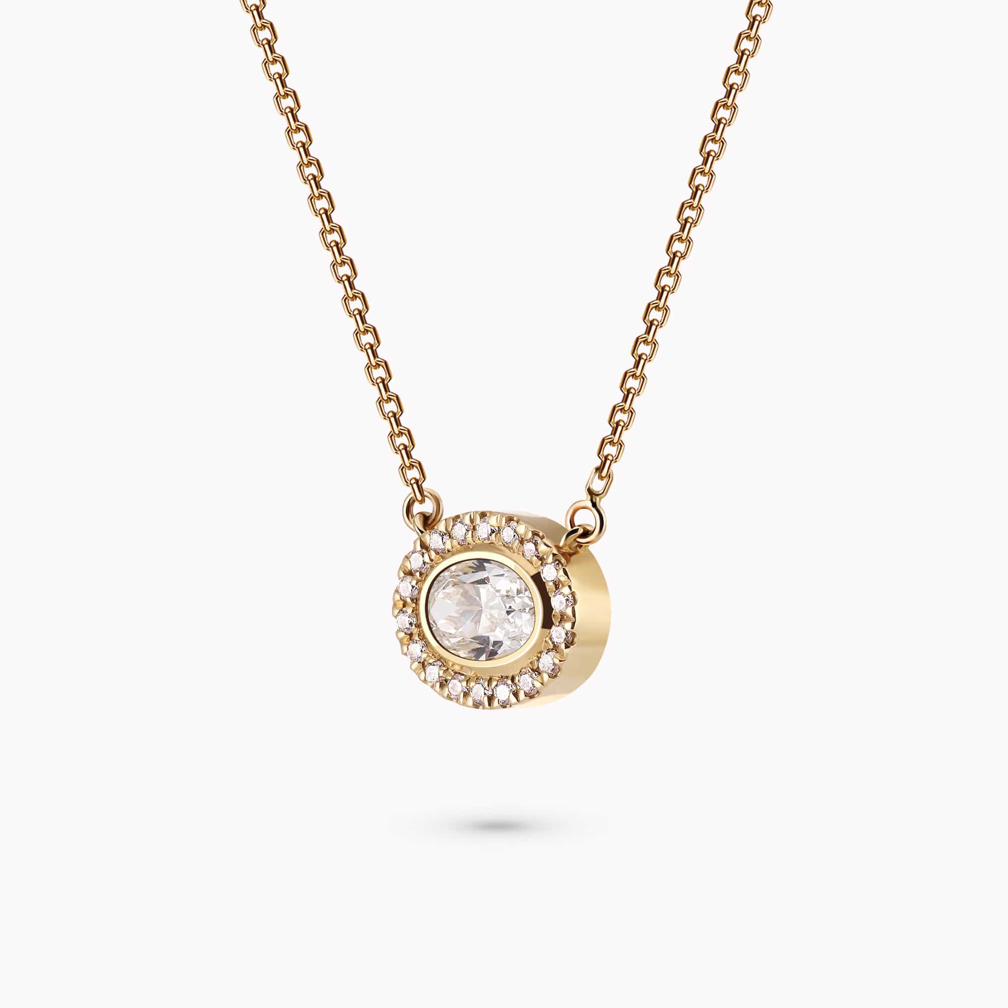0.57Ct. Oval Cut center Diamond with 0.20Ct. Diamond Halo, set in a 14K Gold Pendant.