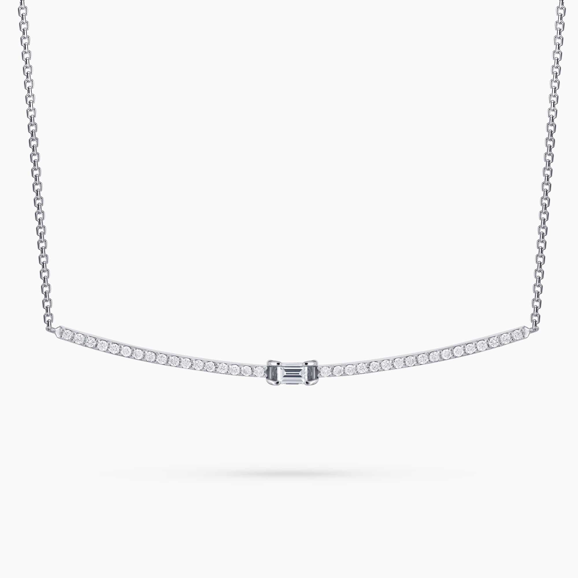 0.18Ct. Baguette center Diamond with 0.28Ct. Diamond setting mounted in 14K White Gold Pendant.