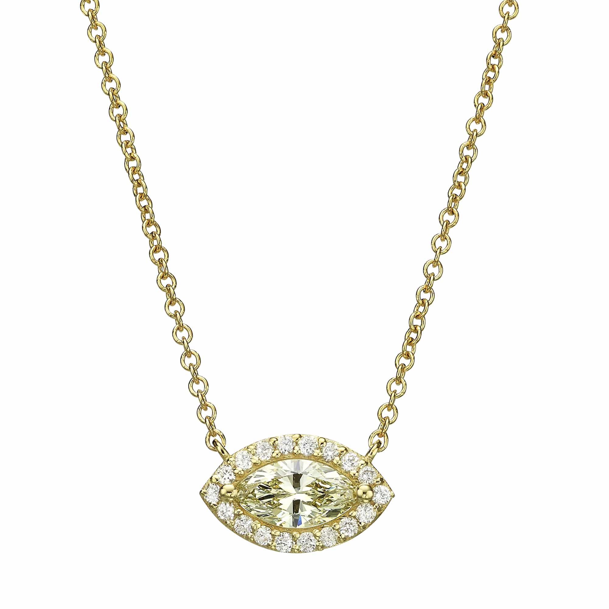 0.50Ct. Marquise Cut Diamond set with 0.14Ct. Diamonds, mounted in 14K Yellow Gold.