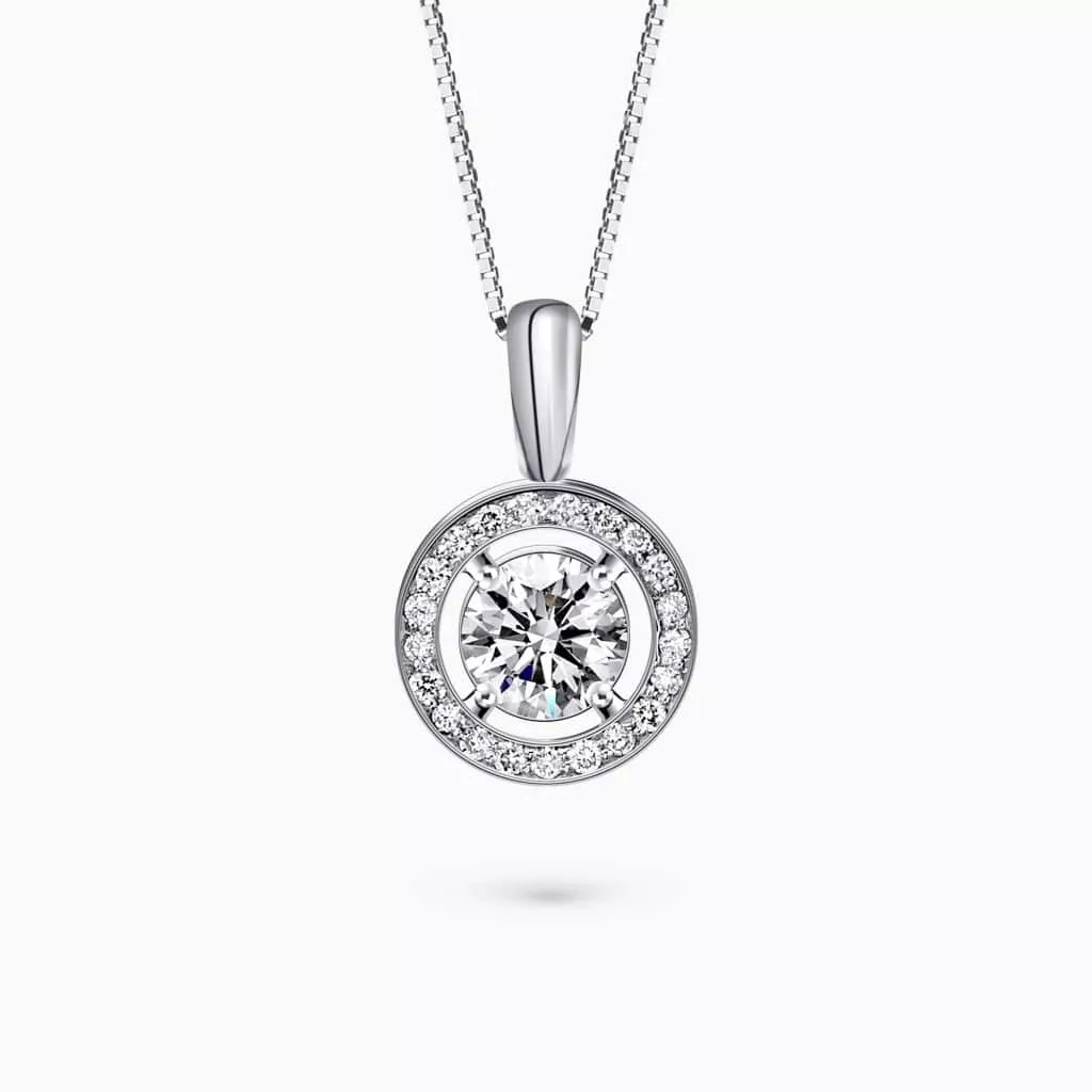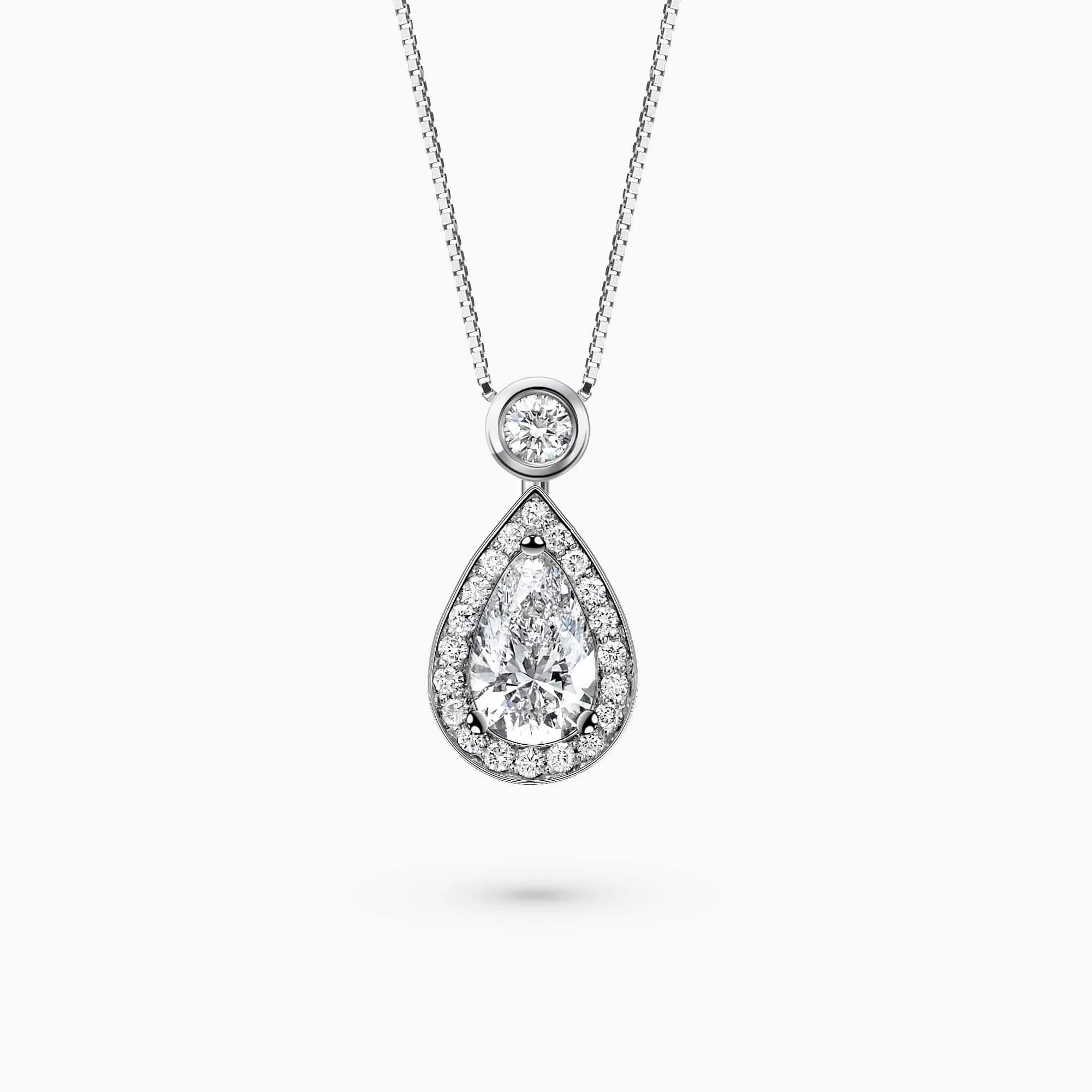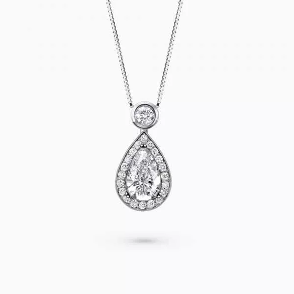0.70Ct. Pear Shaped Diamond with 0.21Ct. Diamond Halo mounted in 14K Gold Pendant.