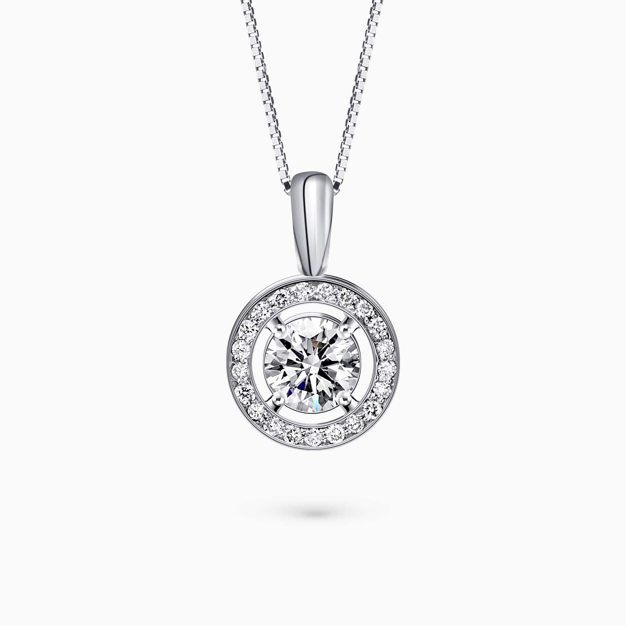 0.50Ct. center stone with 0.14Ct. floating Diamond Halo mounted in 14K White Gold Pendant.