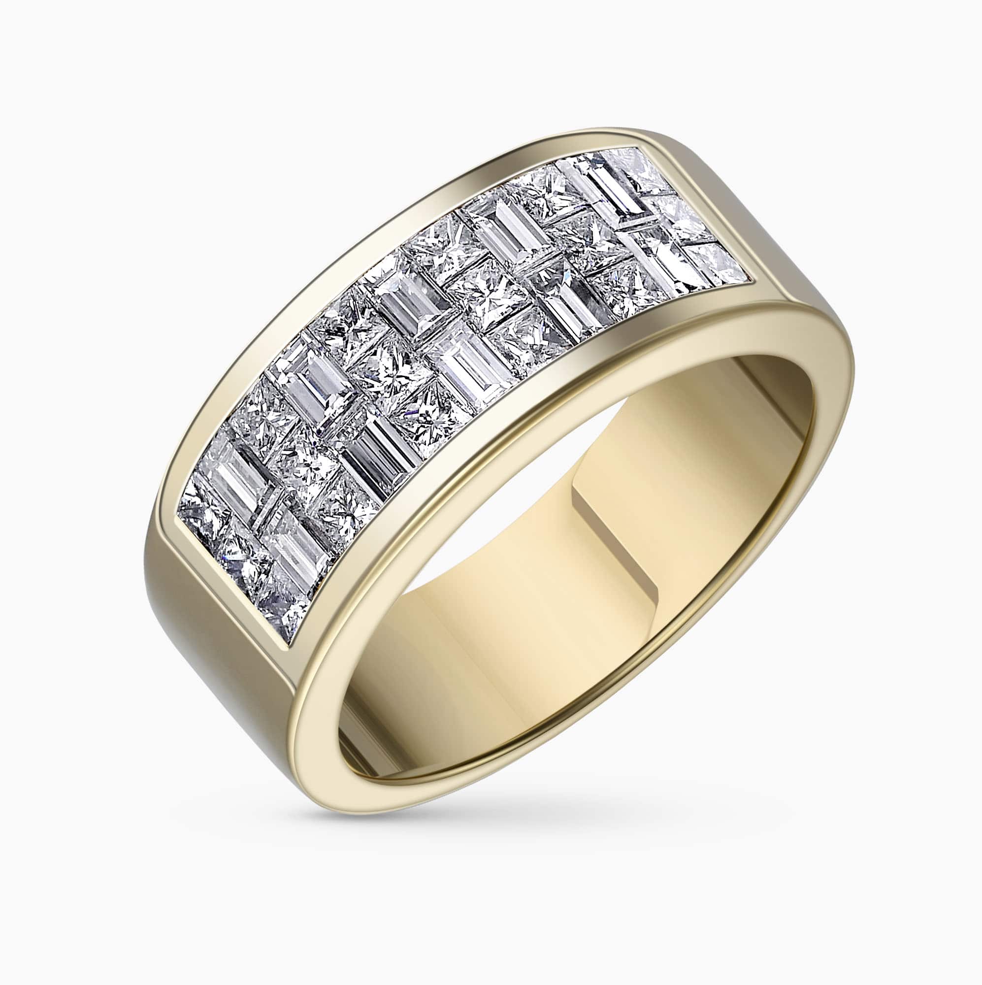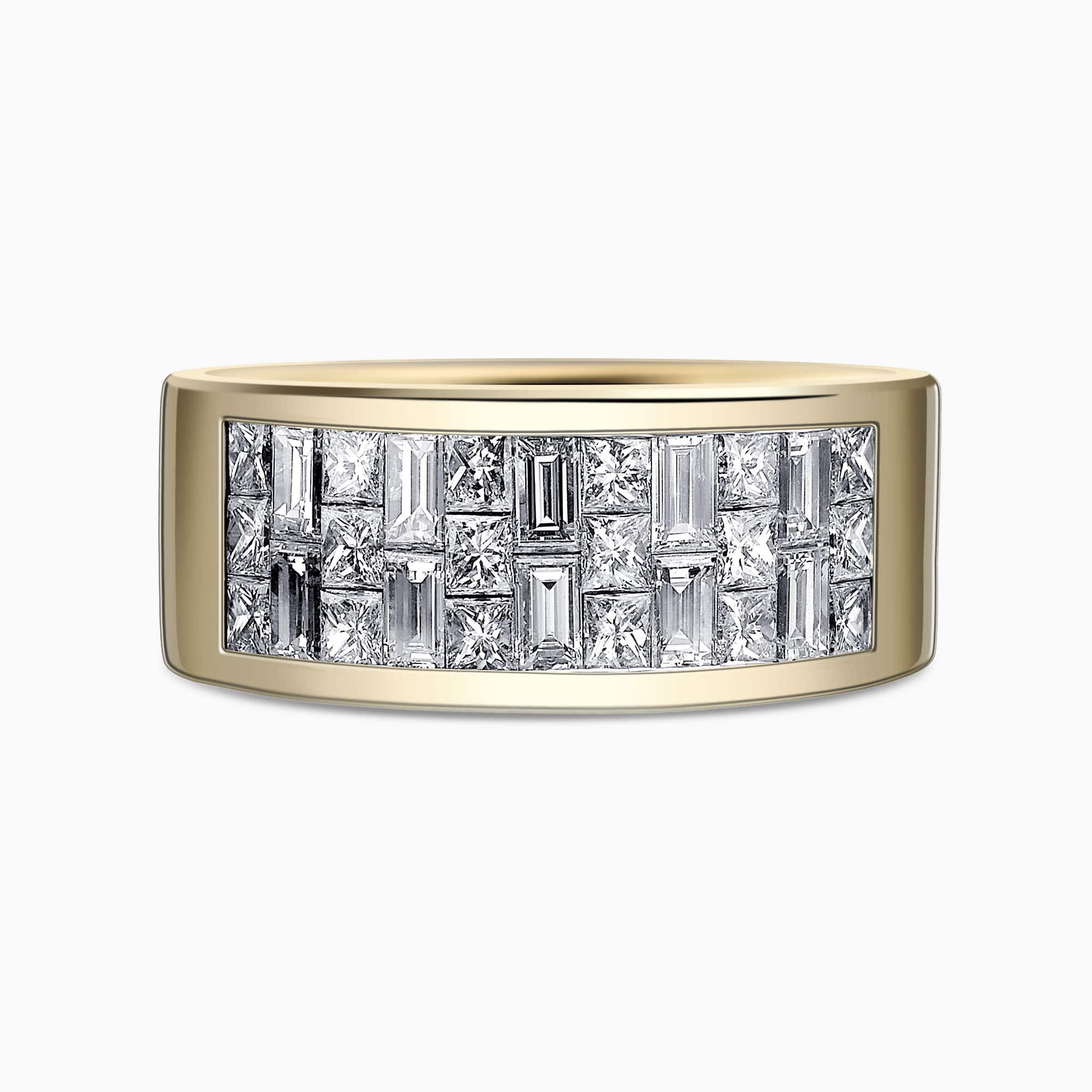 Invisible-set 0.90Ct. Baguette-cut and 0.75Ct. Princess-cut Diamond Ring mounted in 18K Yellow Gold.