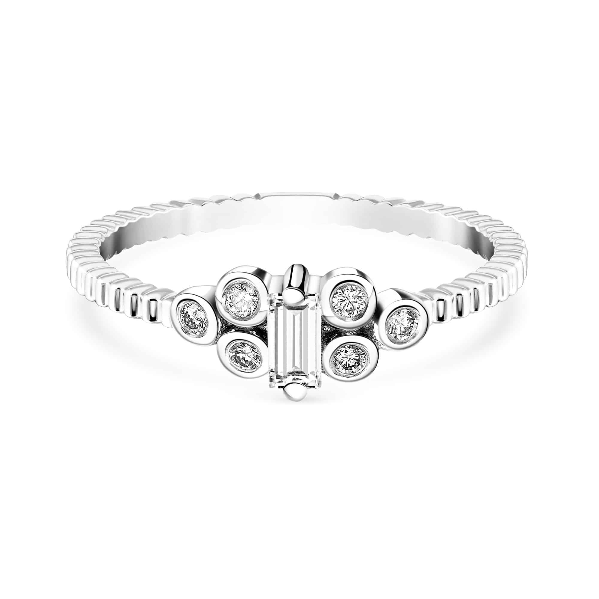0.14Ct. Emerald cut Diamond with 0.10Ct. diamond setting in a 14K White gold Ring.