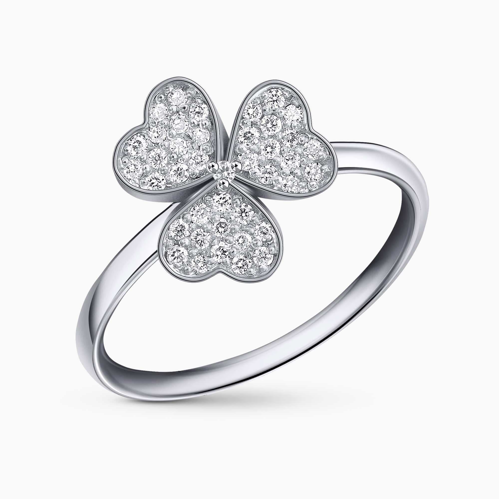 0.24Ct. Diamonds mounted in a 14K White Gold Clover designed Ring.