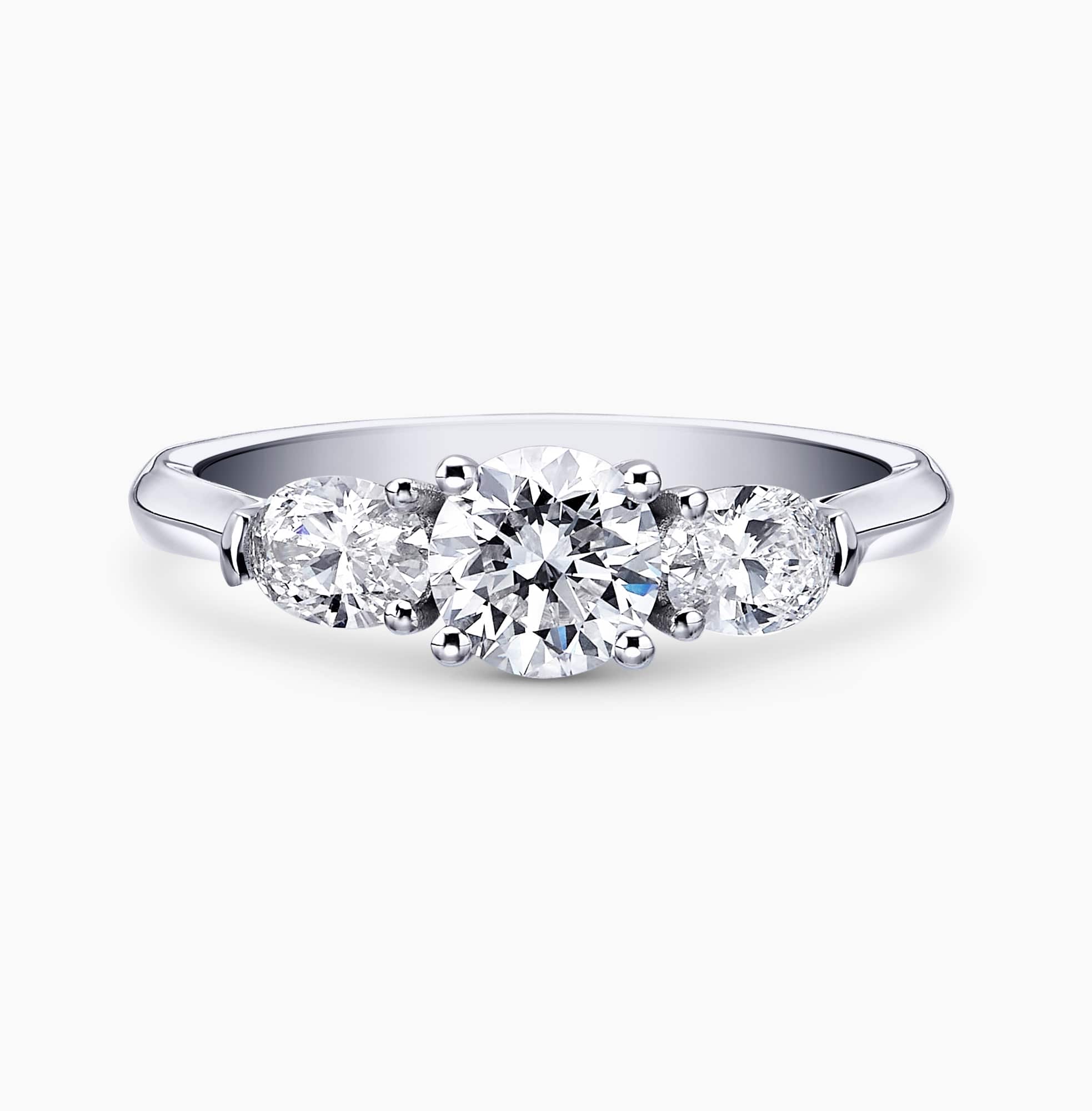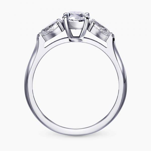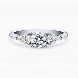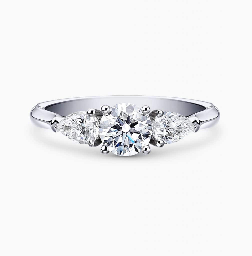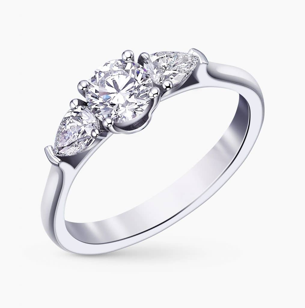 A ring, 14K gold, set with a center round cut diamond starting from 0.50 Ct. and 0.30Ct Pear shape Diamond side setting.