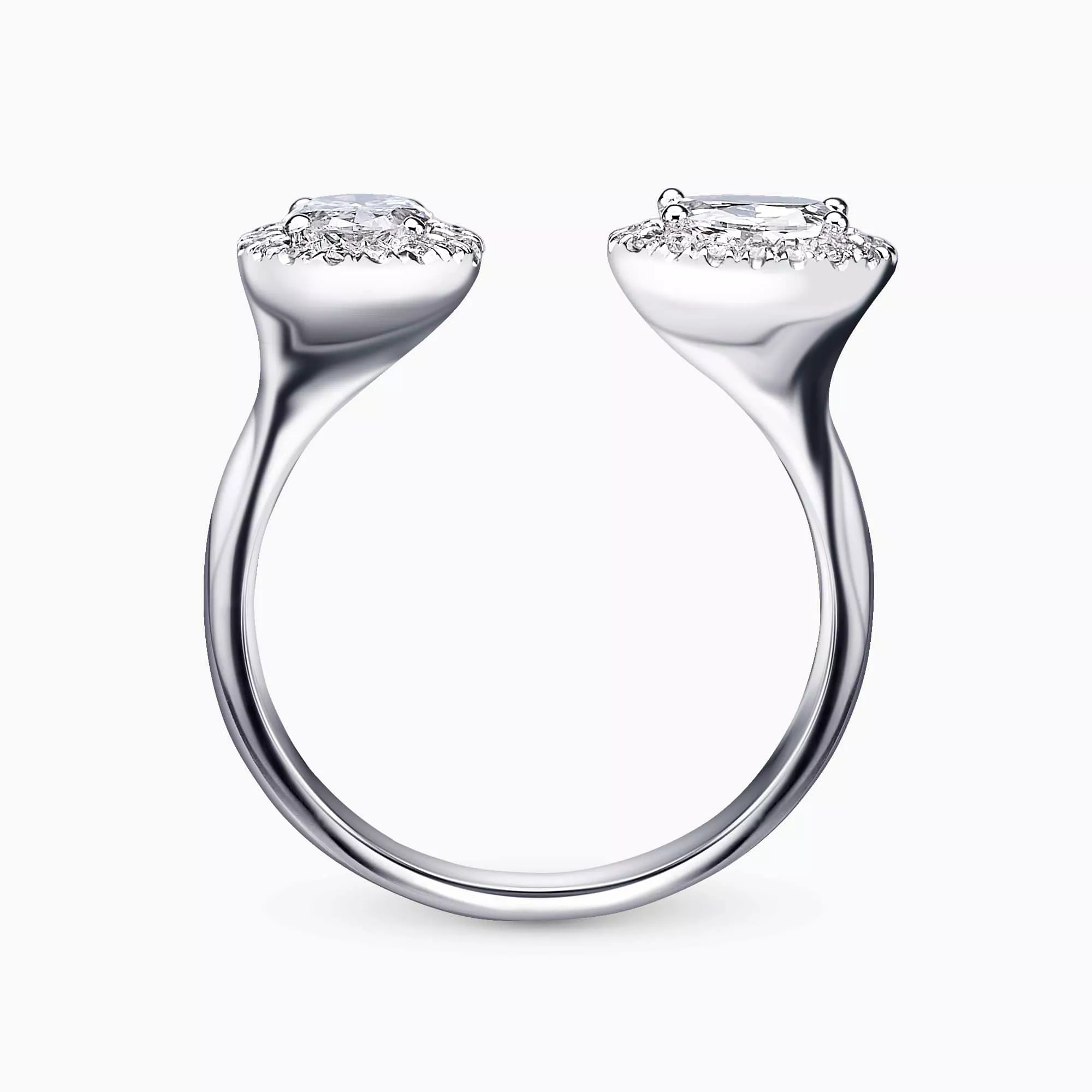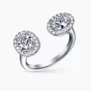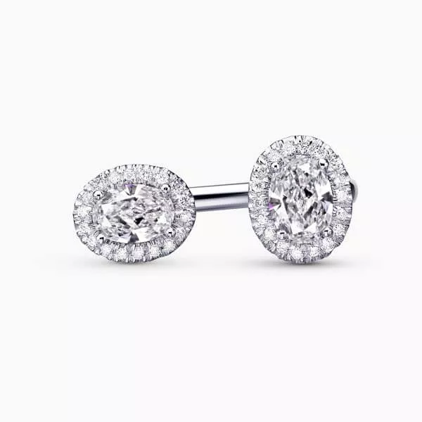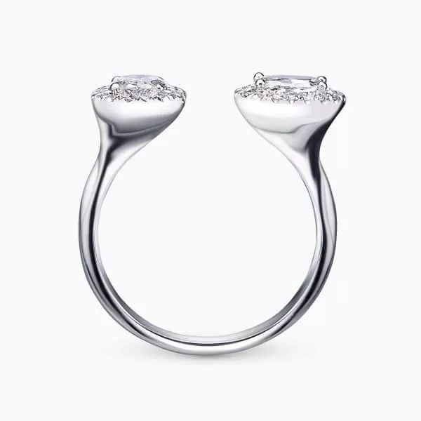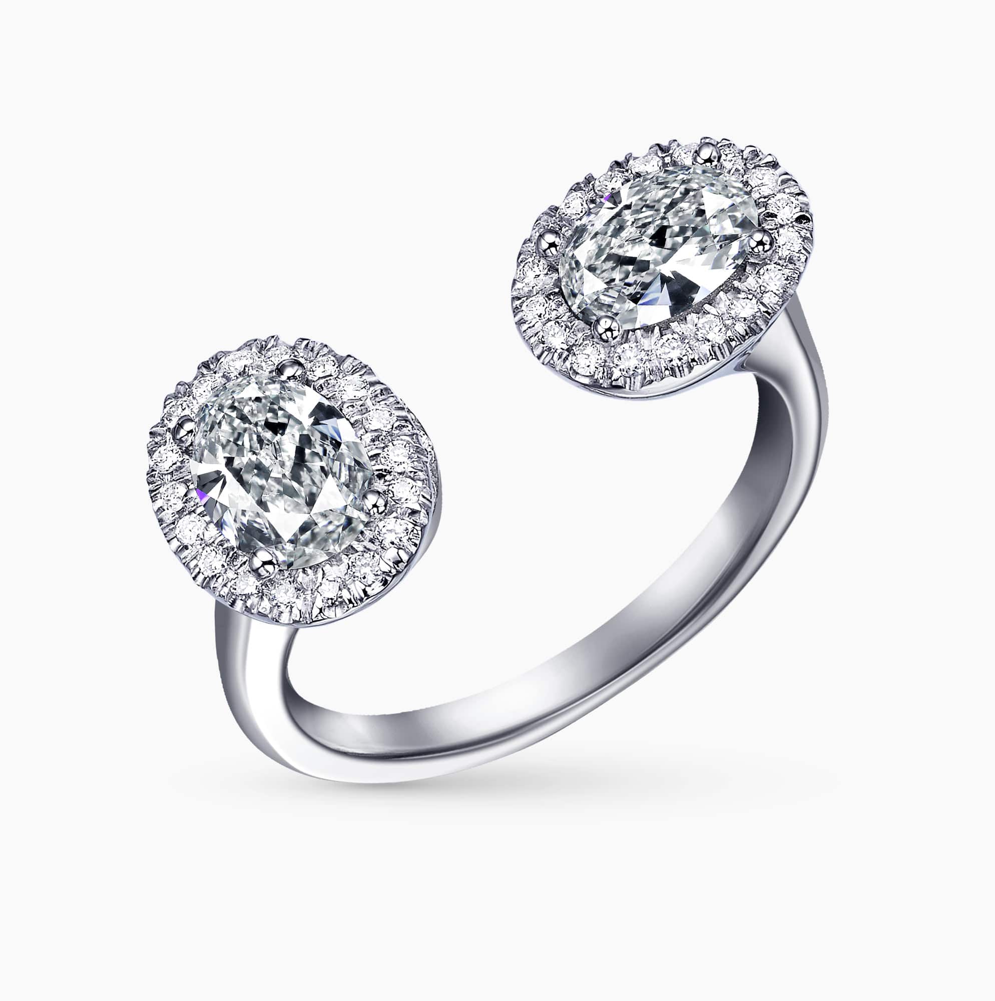 0.30Ct. D SI1 and 0.30Ct. Oval Shaped Diamond with diamonds Halo mounted in 14K White Gold open Ring.