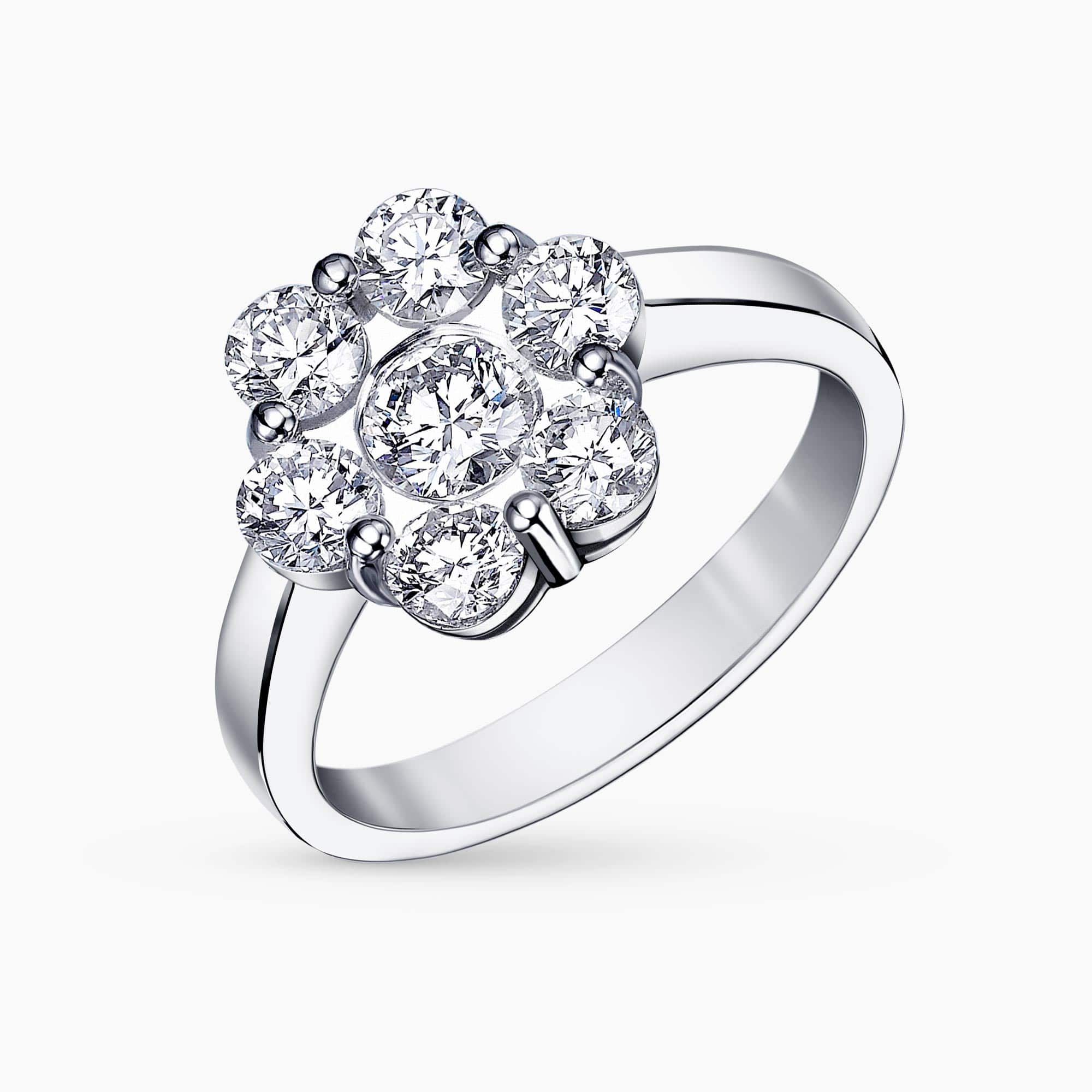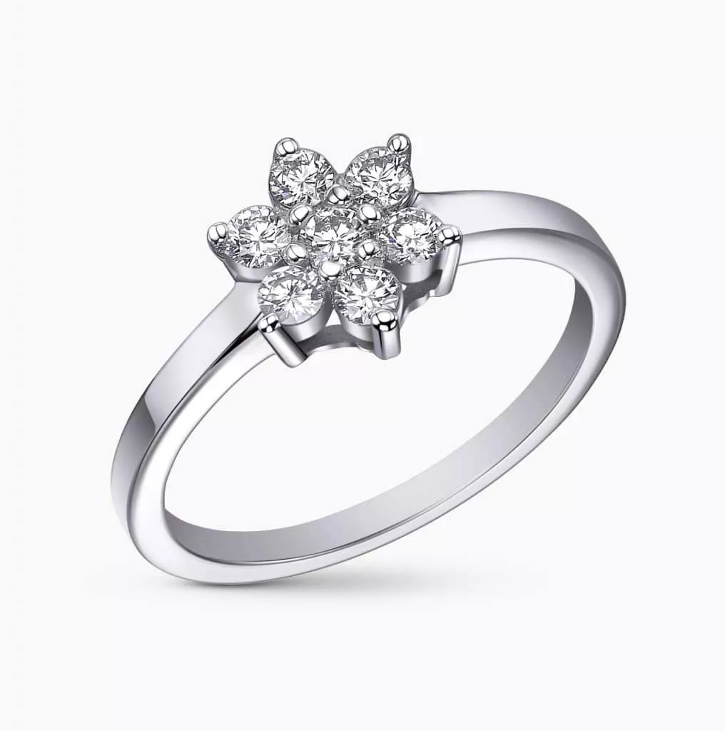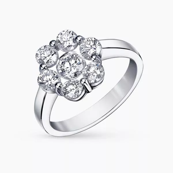 0.30Ct. center Diamond with 1.18Ct. Brilliant diamonds around in a 14K white Gold Flower shaped Ring.