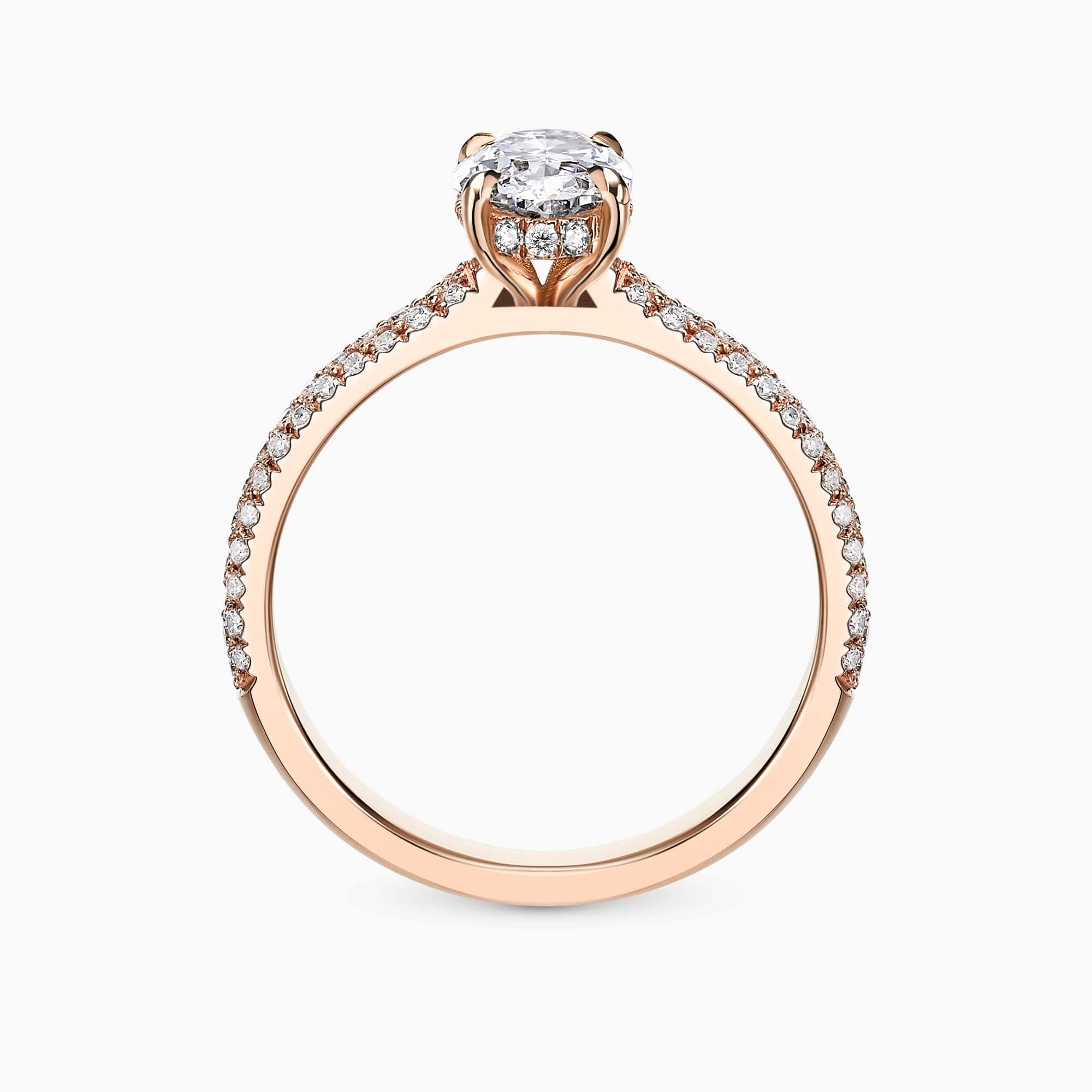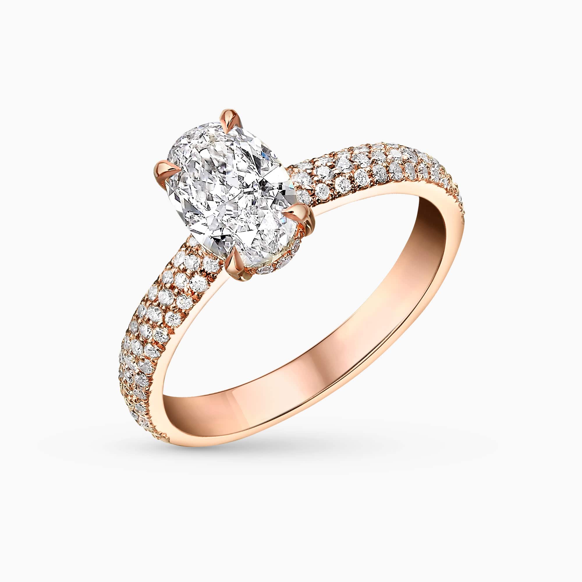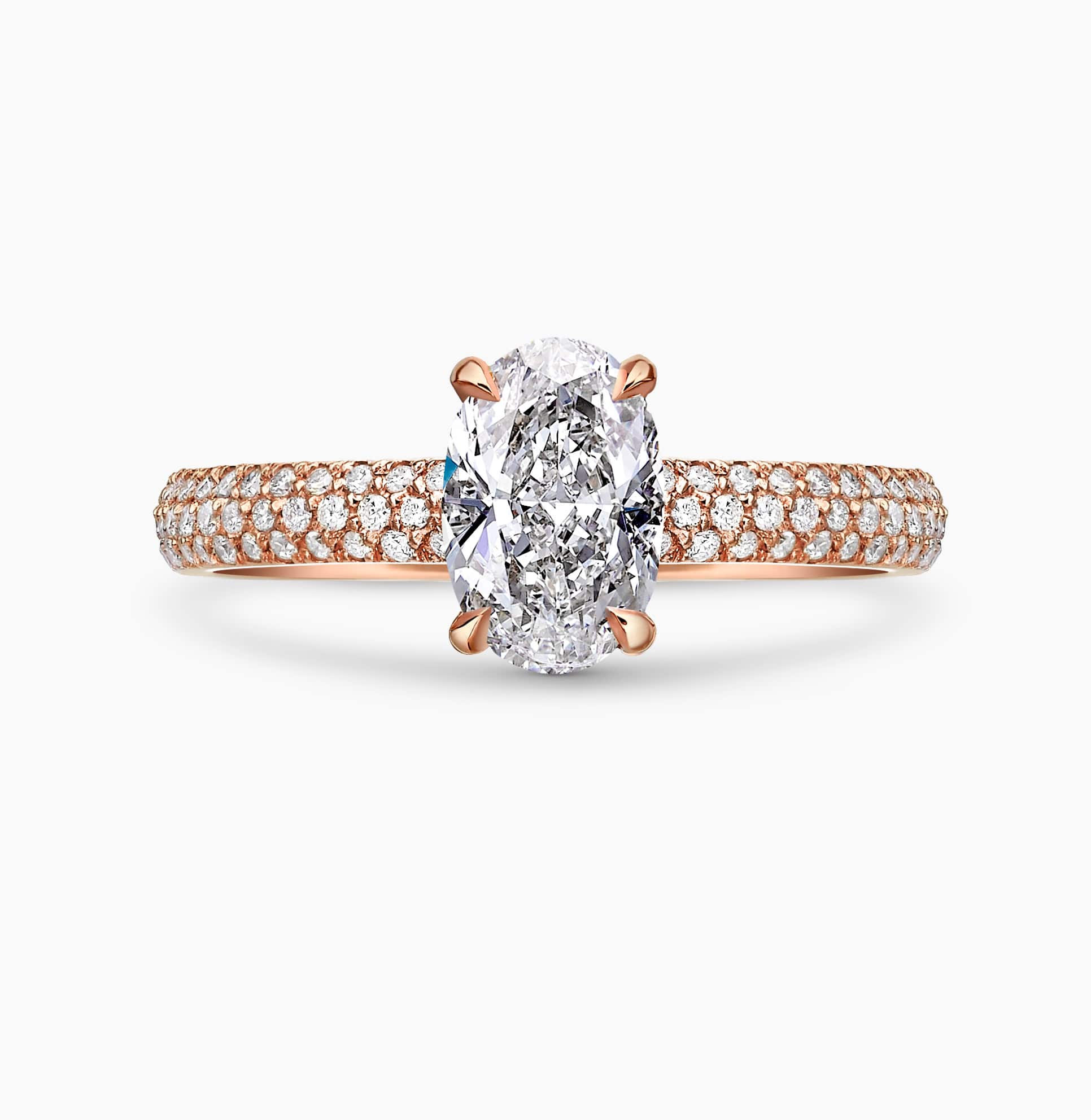 0.50ct. Oval cut Diamond with 0.67Ct. Diamond setting in three row along the shank , mounted in a classic 4 Prong, 14K Rose Gold Ring.