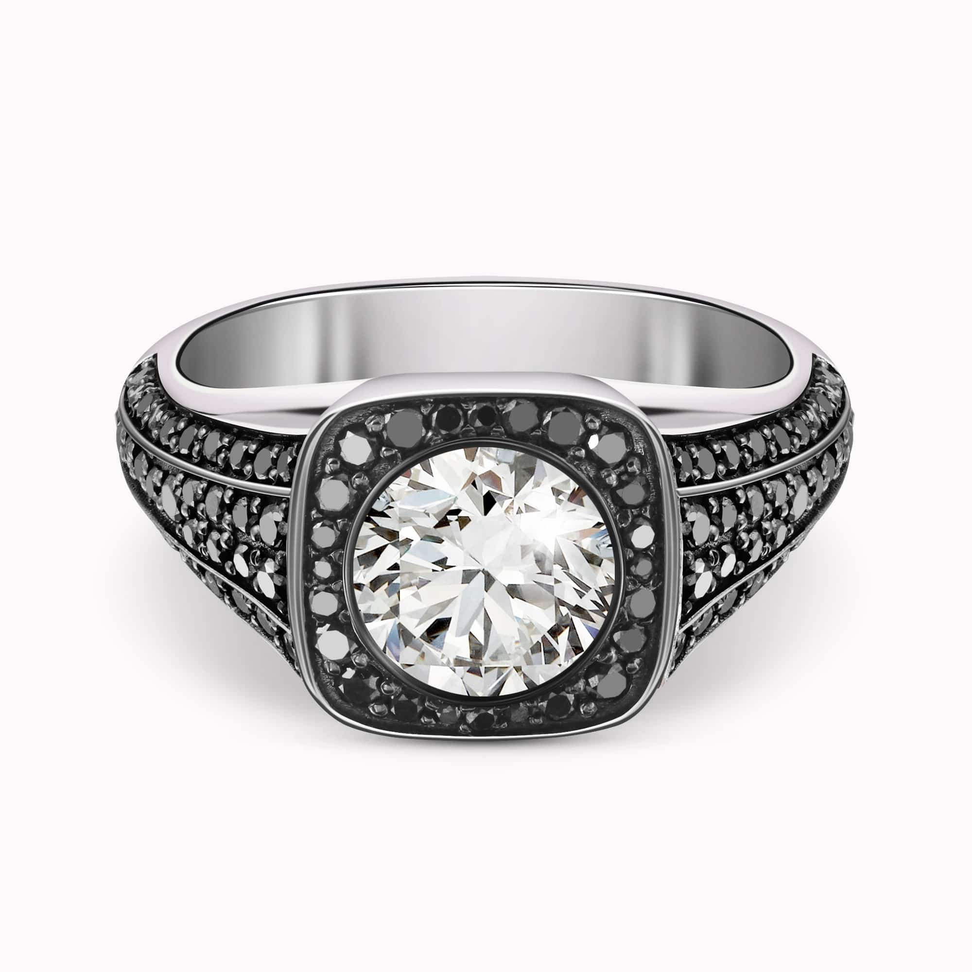 14K White Gold Ring set with 2.50Ct. Center Diamond and 1.54Ct. Black Diamonds.