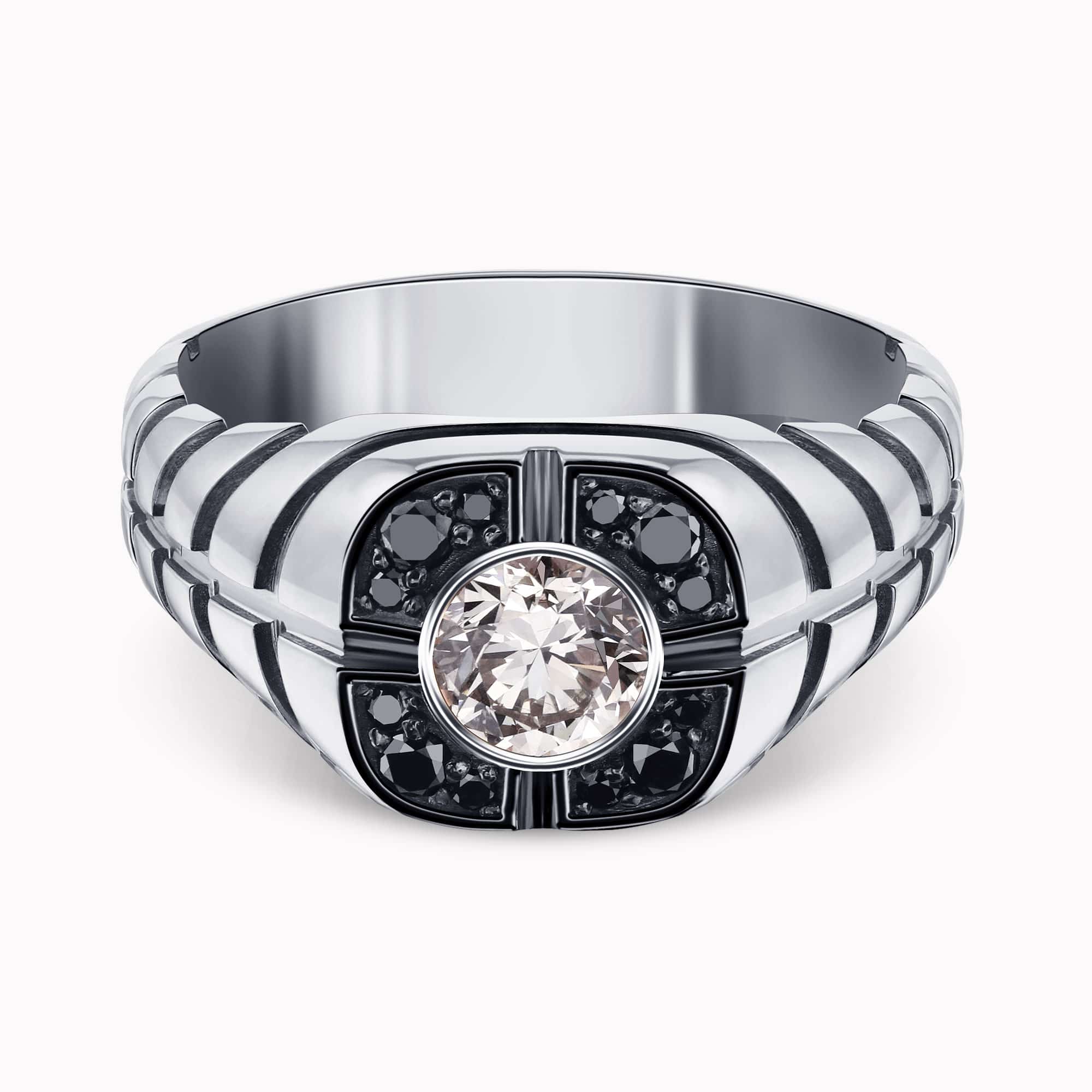 14K White Gold Ring set with 1.00Ct. Center Diamond and 0.34Ct. Black Diamonds.