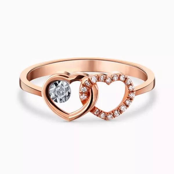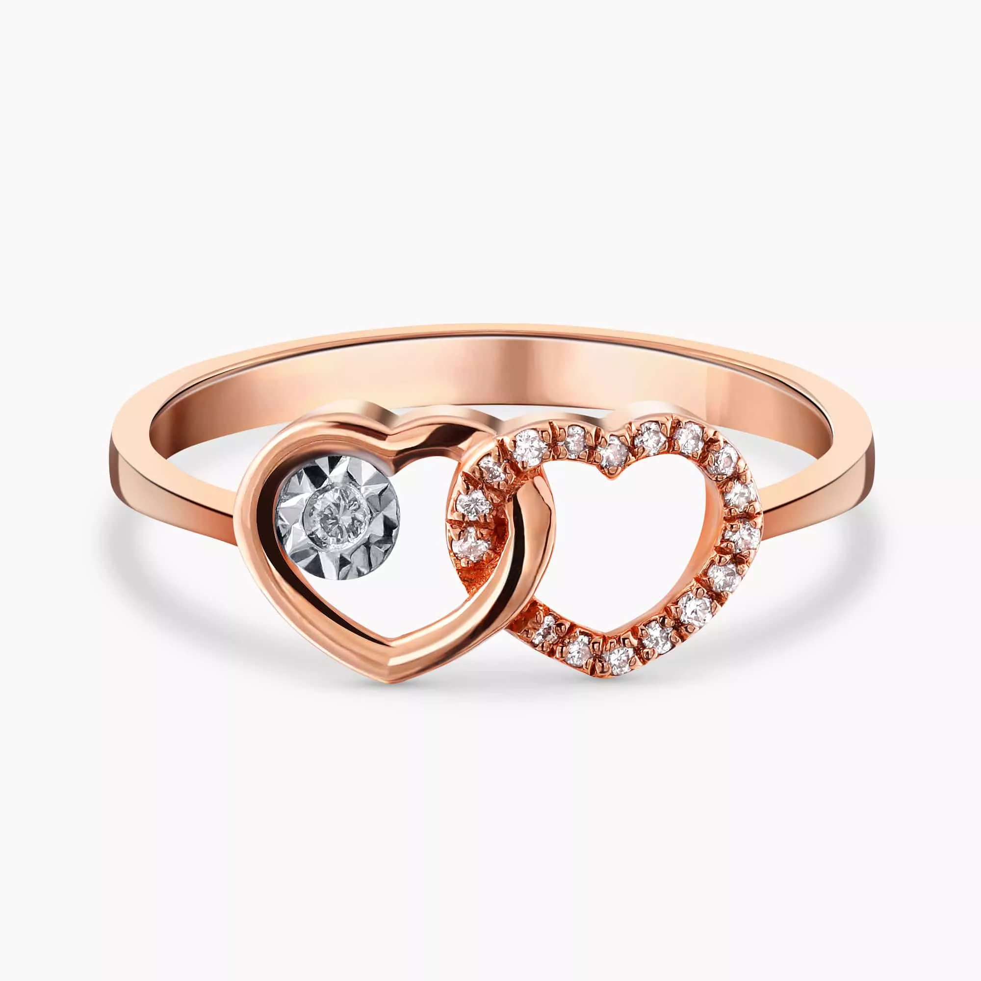 0.06Ct. Diamonds mounted in a 14K Rose Gold Hearts designed Ring.