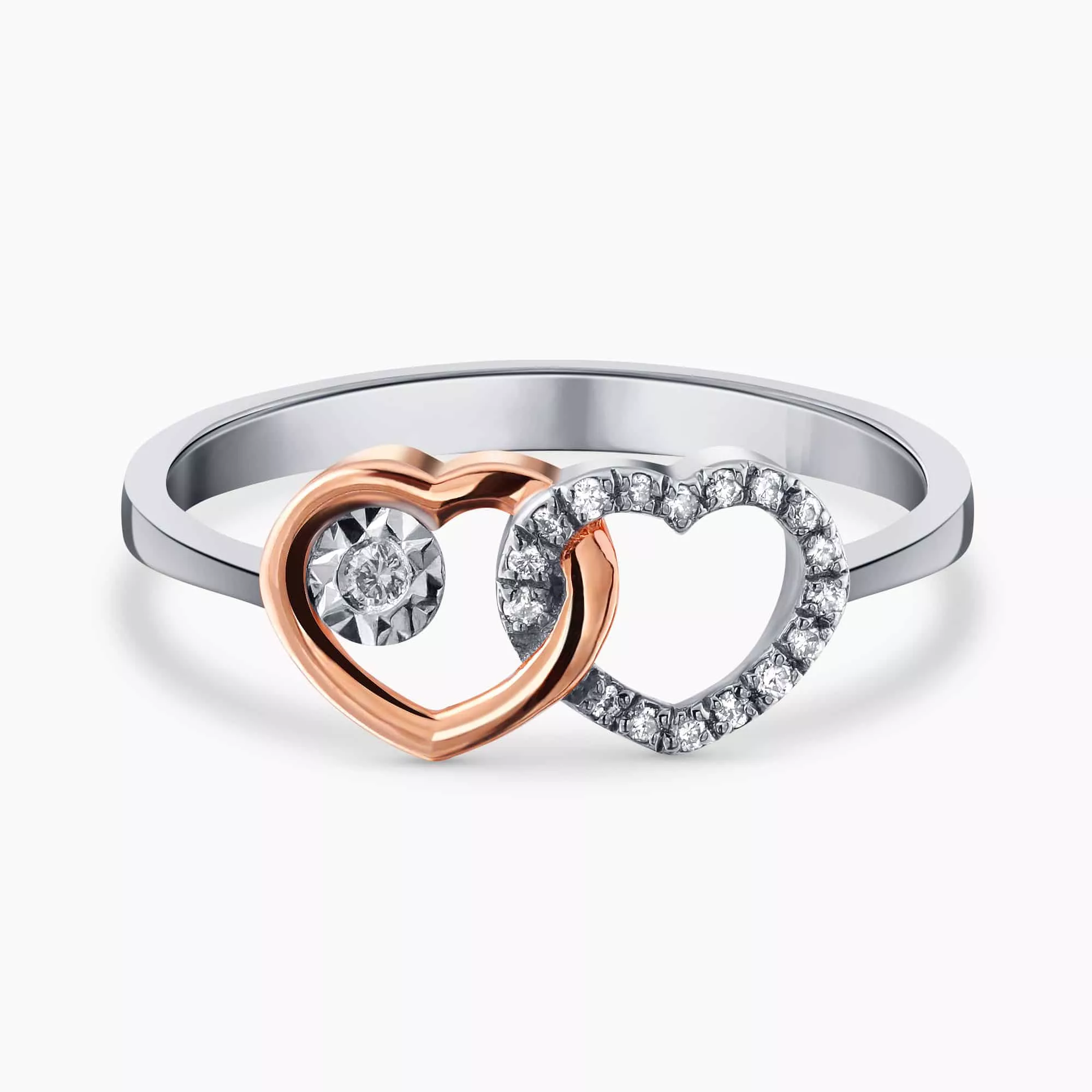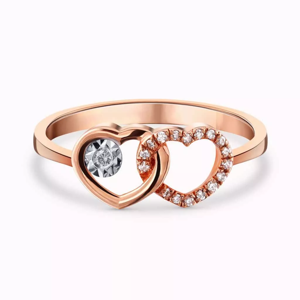 0.06Ct. Diamonds mounted in a 14K Gold Hearts designed Ring.