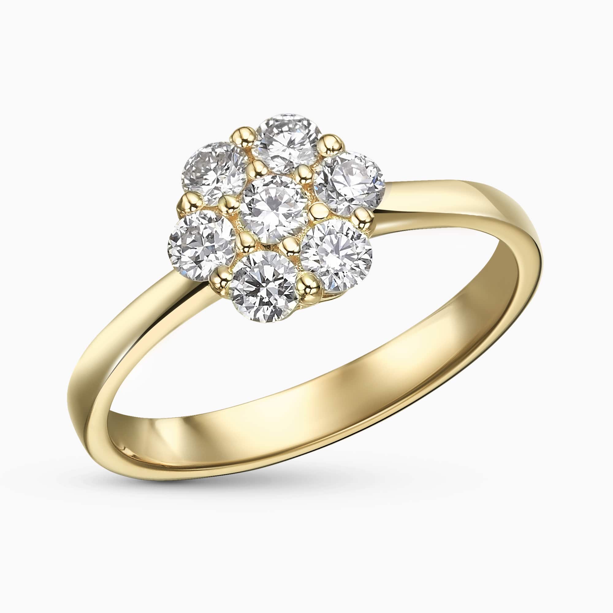 0.56Ct. Diamonds mounted in a 14K Yellow Gold Flower Ring.