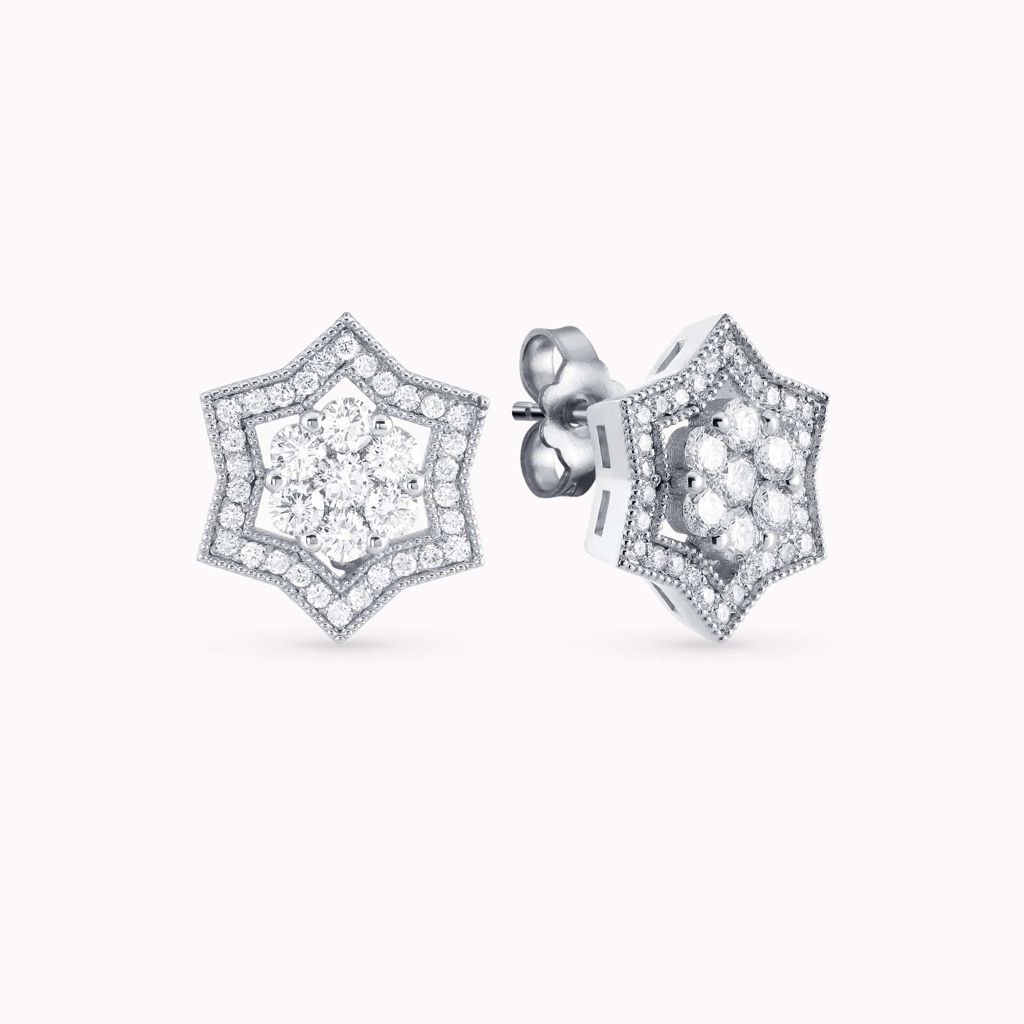 Star of David Earrings, 14K White Gold , set with 0.84Ct. Diamonds.