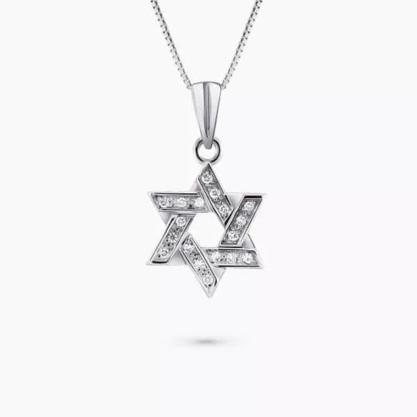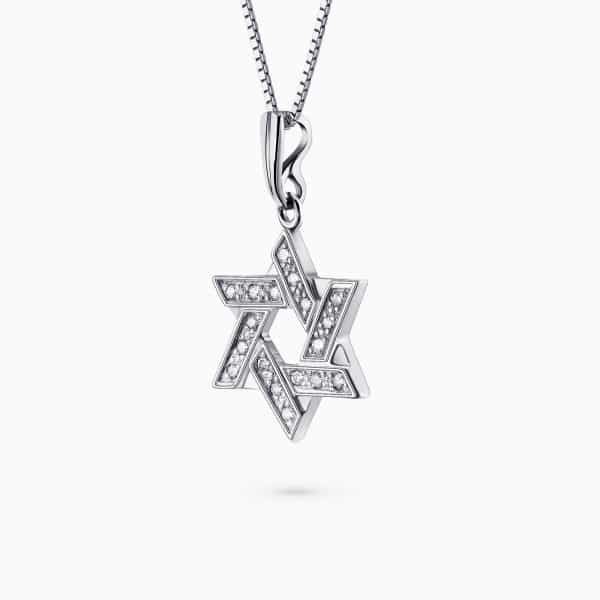 Star of David Pendant, 14K White Gold , set with 0.12Ct. Diamonds.
