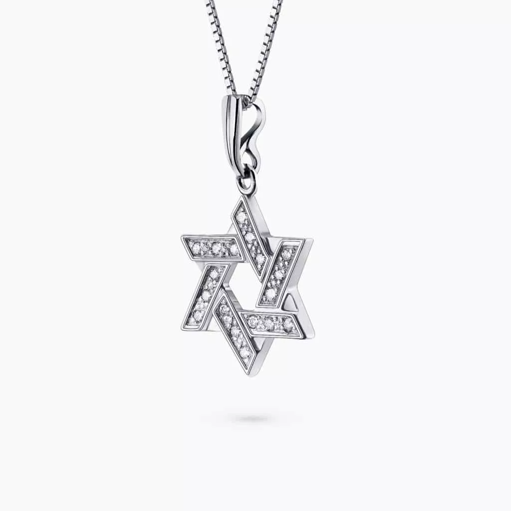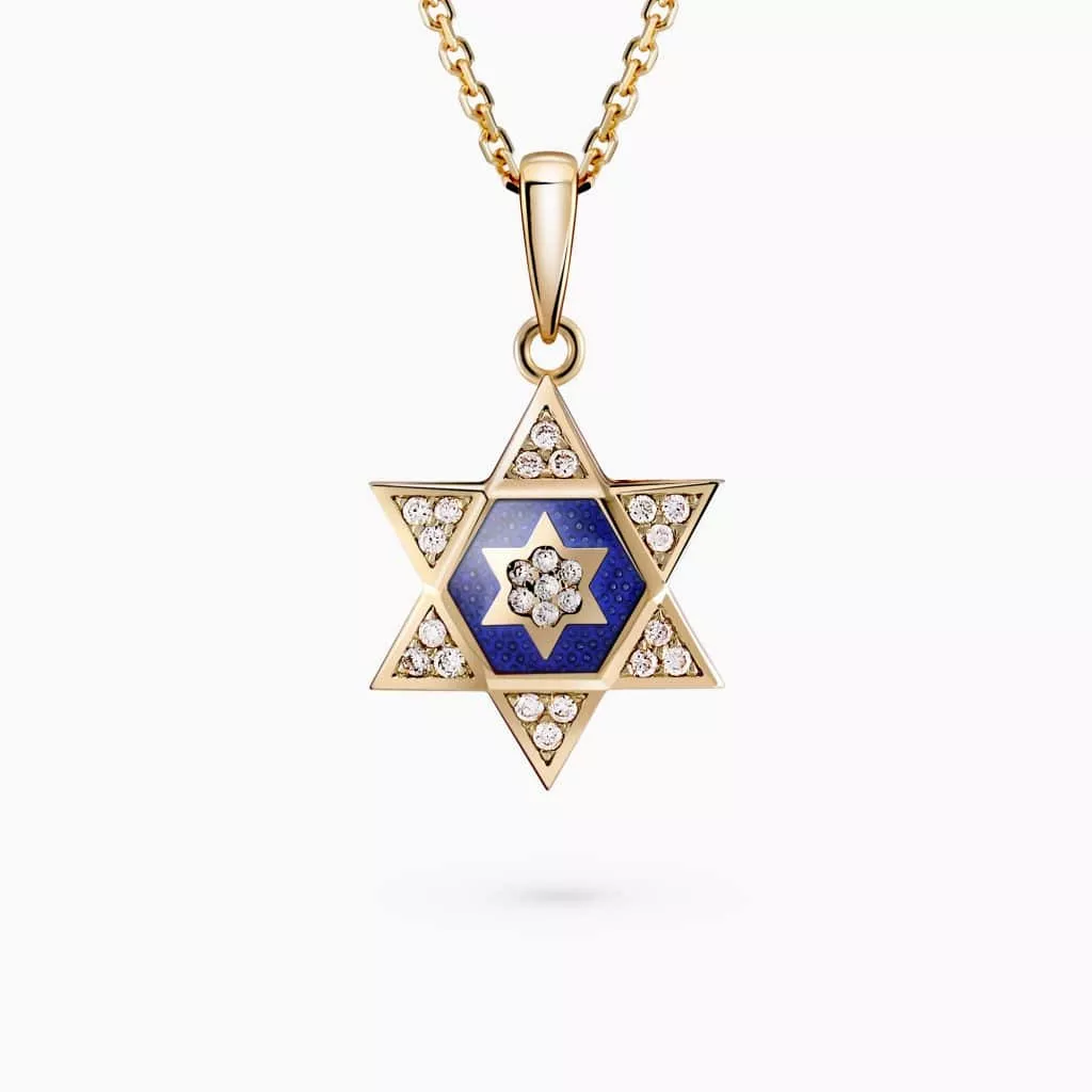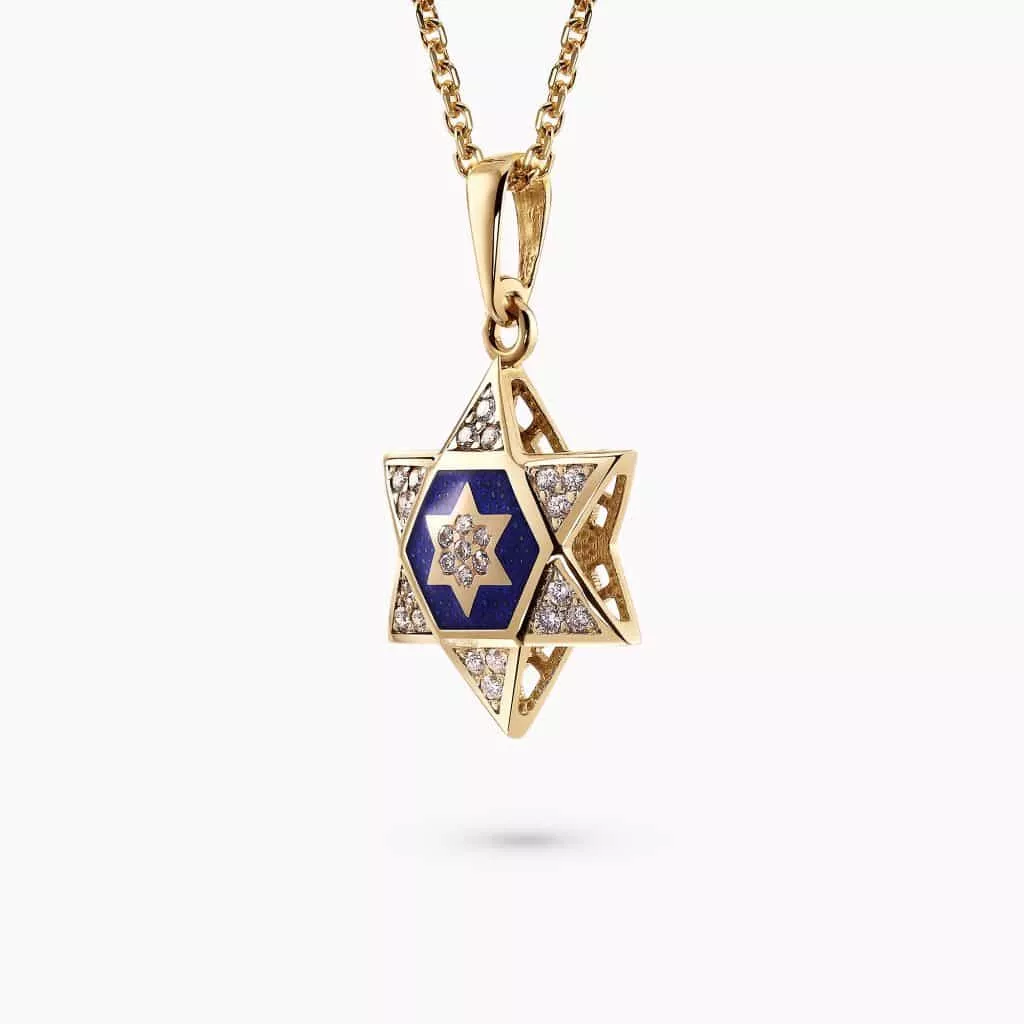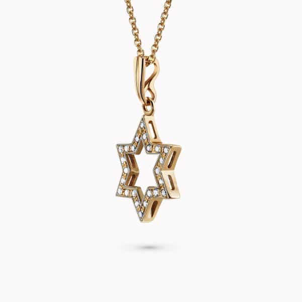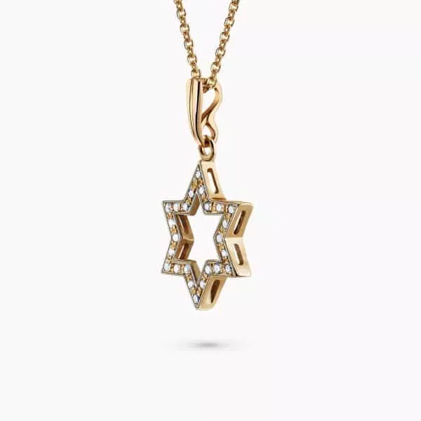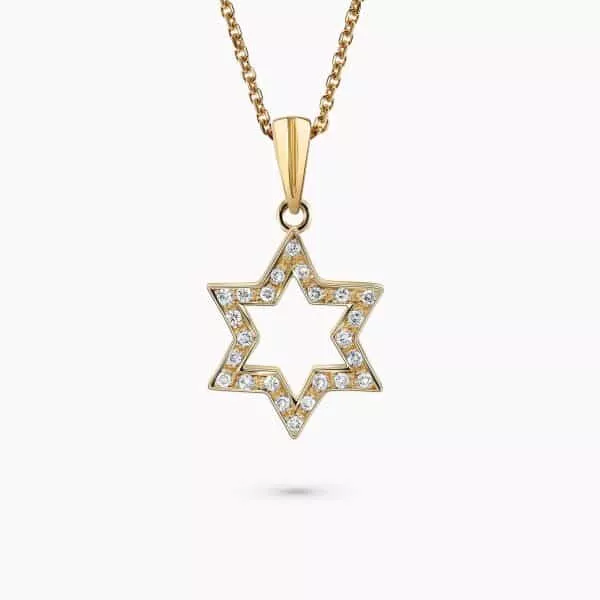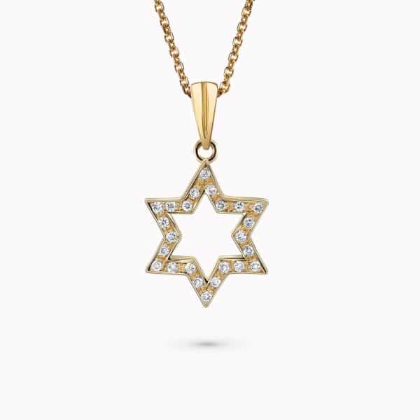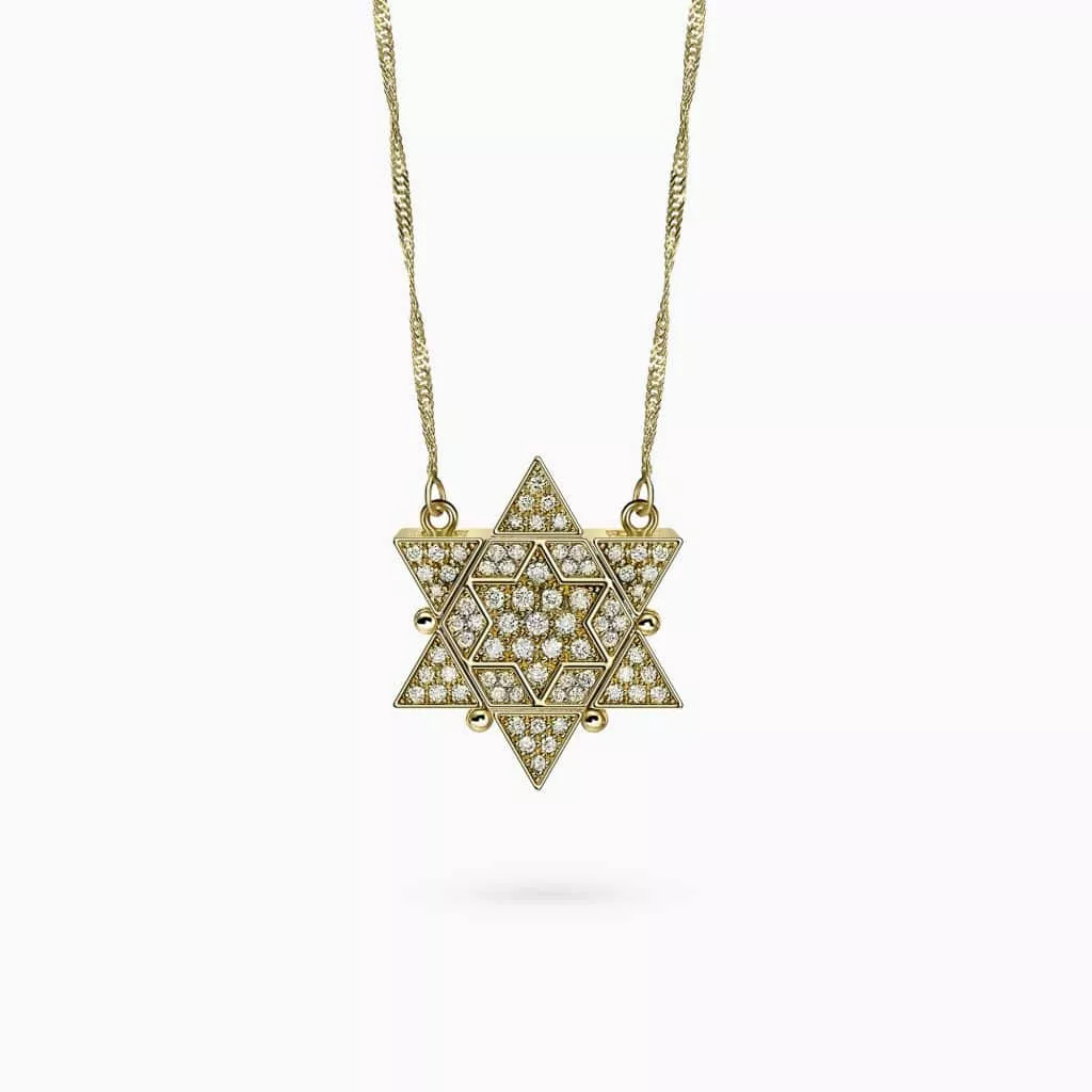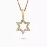 Star of David Pendant, 14K Yellow Gold , set with 0.16Ct. Diamonds.