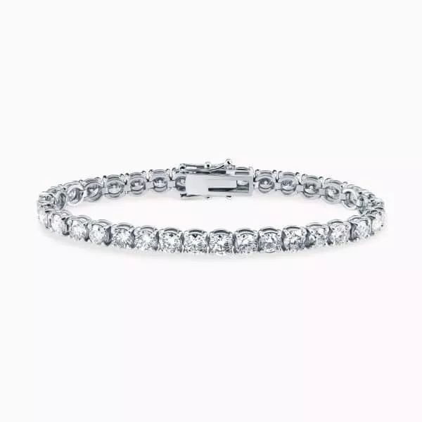 A classic Tennis Bracelet with 14.89Ct. Diamonds mounted in 14K White Gold.