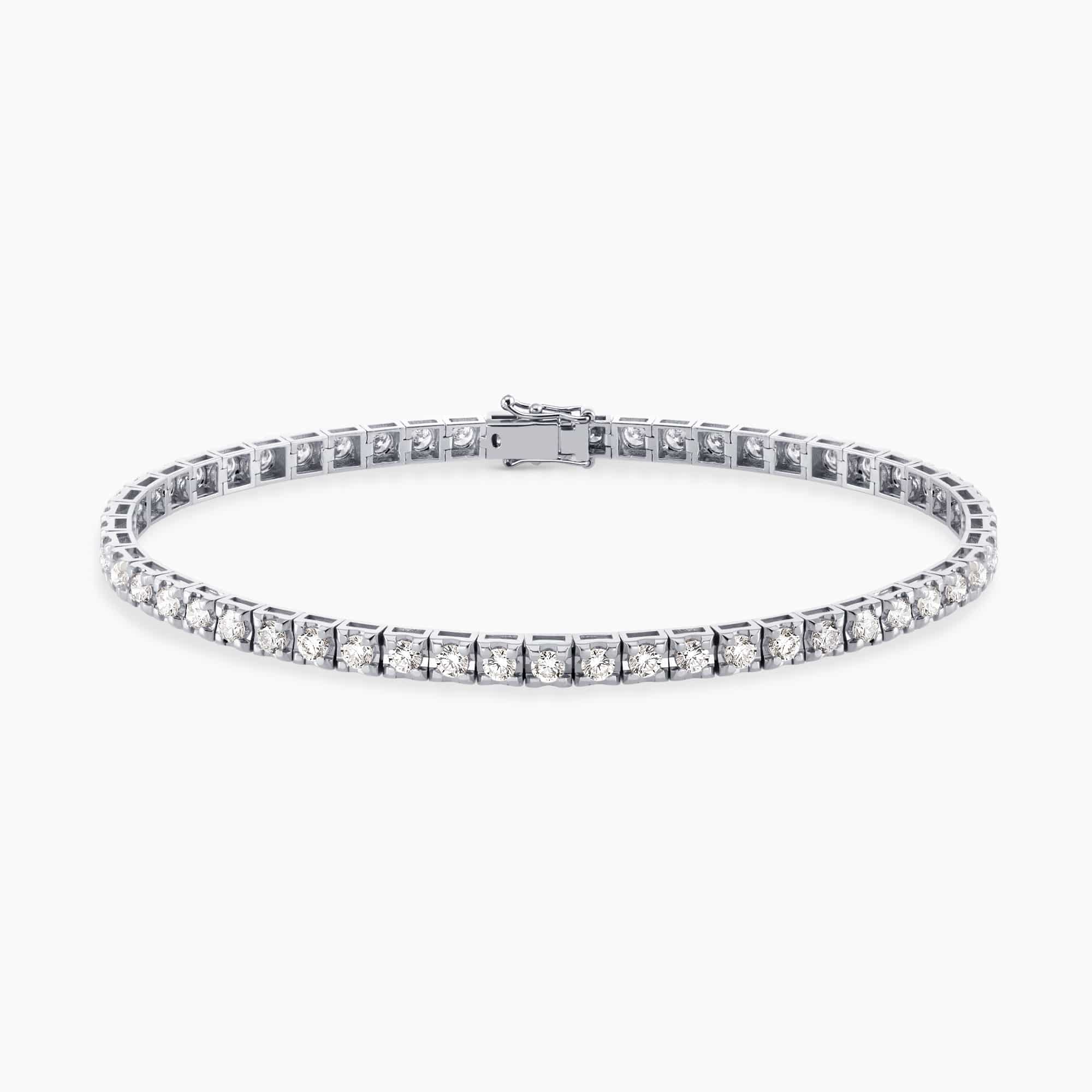 A classic Tennis Bracelet with 3.65Ct. Diamonds mounted in 14K White Gold.