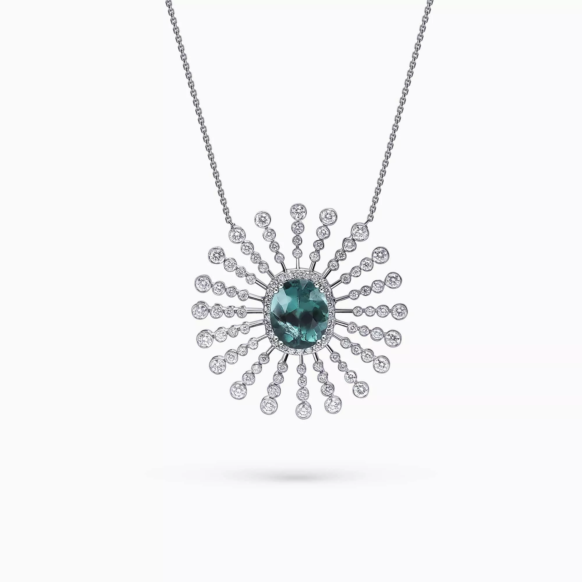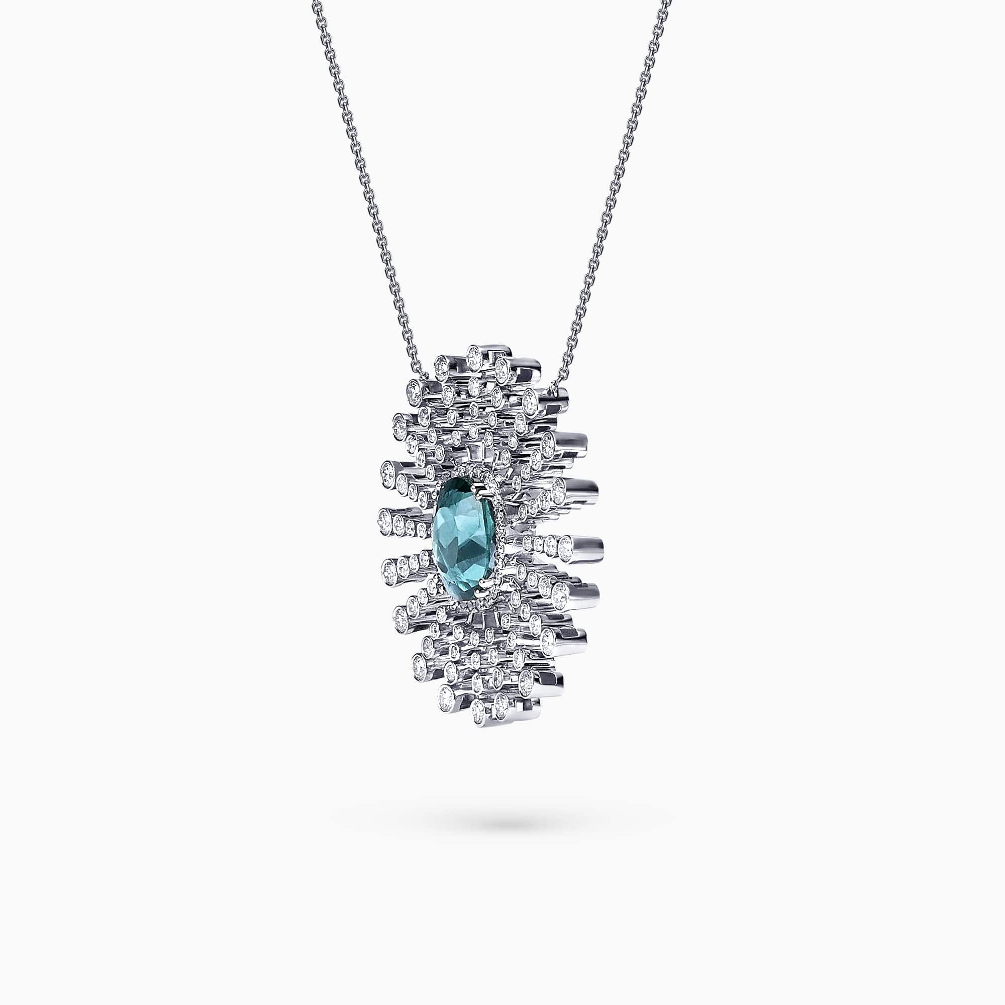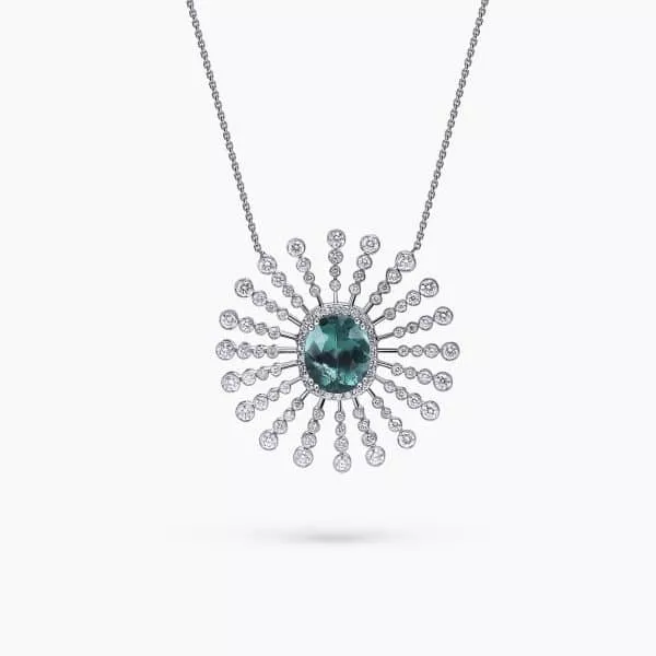 Elegant evening wear 4.70Ct. Tourmaline Gemstone with 1.83Ct. Diamond setting in 14K White Gold Necklace.