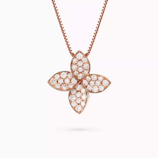 0.93Ct. Diamonds mounted in 18K Rose Gold Flower Design Pendant.