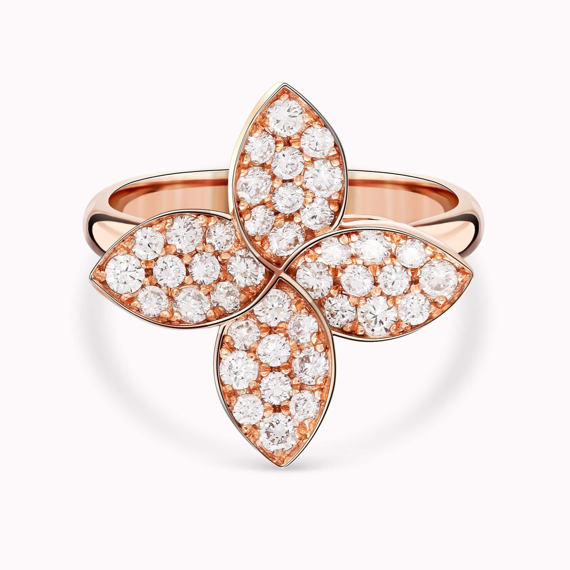 0.93Ct. Diamonds mounted in a 14K Rose Gold Flower designed Ring.