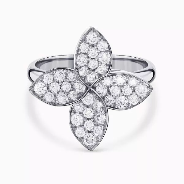 0.93Ct. Diamonds mounted in a 14K White Gold Flower designed Ring.