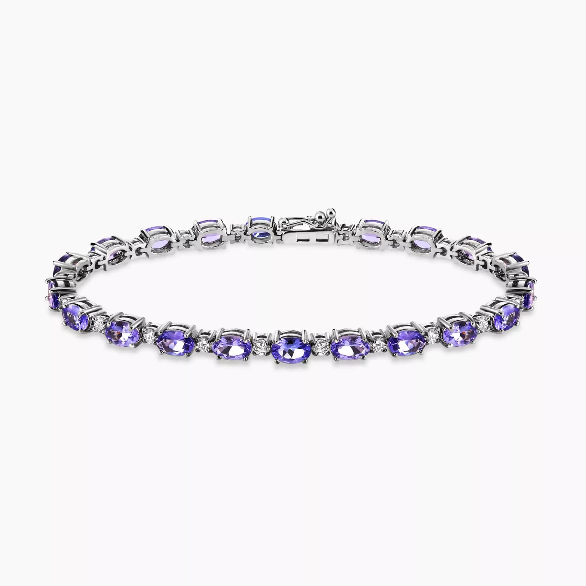 9.40Ct. Tanzanite stones set with 1.21Ct. Diamonds in a 14K White Gold Bracelet.